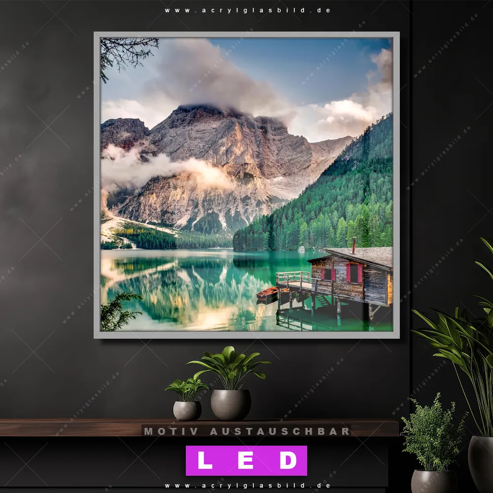 Bist du bereit, deine Wände mit einem dimmbaren LED Bild mit Fernbedienung und optionaler Farbtemperatursteuerung zum Leuchten zu bringen? Wir haben das ultimative Landschaften LED Acrylglasbild Canvalight® DIA für dich! Unser LED Wandbild aus Acrylglas Bootshütte im Quadratischen Format mit austauschbarer bedruckter Acrylglas-Scheibe im DIA-Klapprahmen bringt sofort jede Menge Glanz in deine vier Wände.