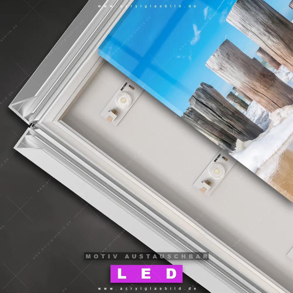 Also, worauf wartest du noch? Gib mit einem beleuchteten Wandbild mit wechselbarer Acrylglas-Scheibe deinen Wänden das gewisse Etwas und bestelle jetzt das LED Acrylglasbild Canvalight® DIA Blauer Himmel über Wellenbrecher – dein Zuhause wird es dir danken und deine Freunde werden dank der wechselbaren Motive erblassen!
