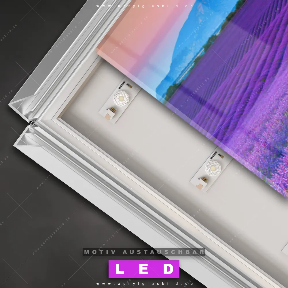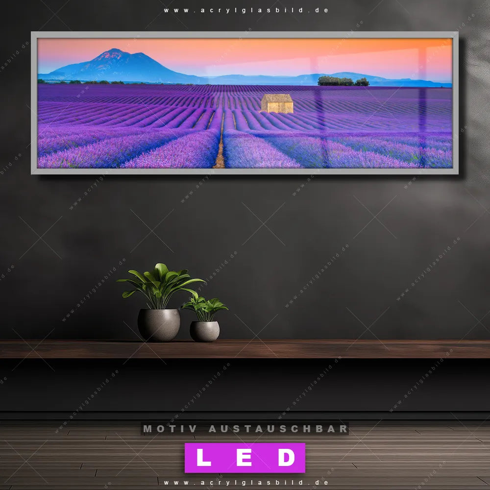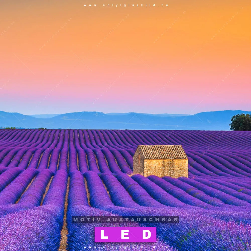 Also, worauf wartest du noch? Verwandle deine Wände mit einem LED Leuchtbild in wahre Kunstwerke und bestelle jetzt das Canvalight® DIA LED Acrylglasbild Feld mit Lavendel vor den Bergen. Deine Wände werden strahlen, und deine Freunde werden dank der wechselbaren Motive staunen!