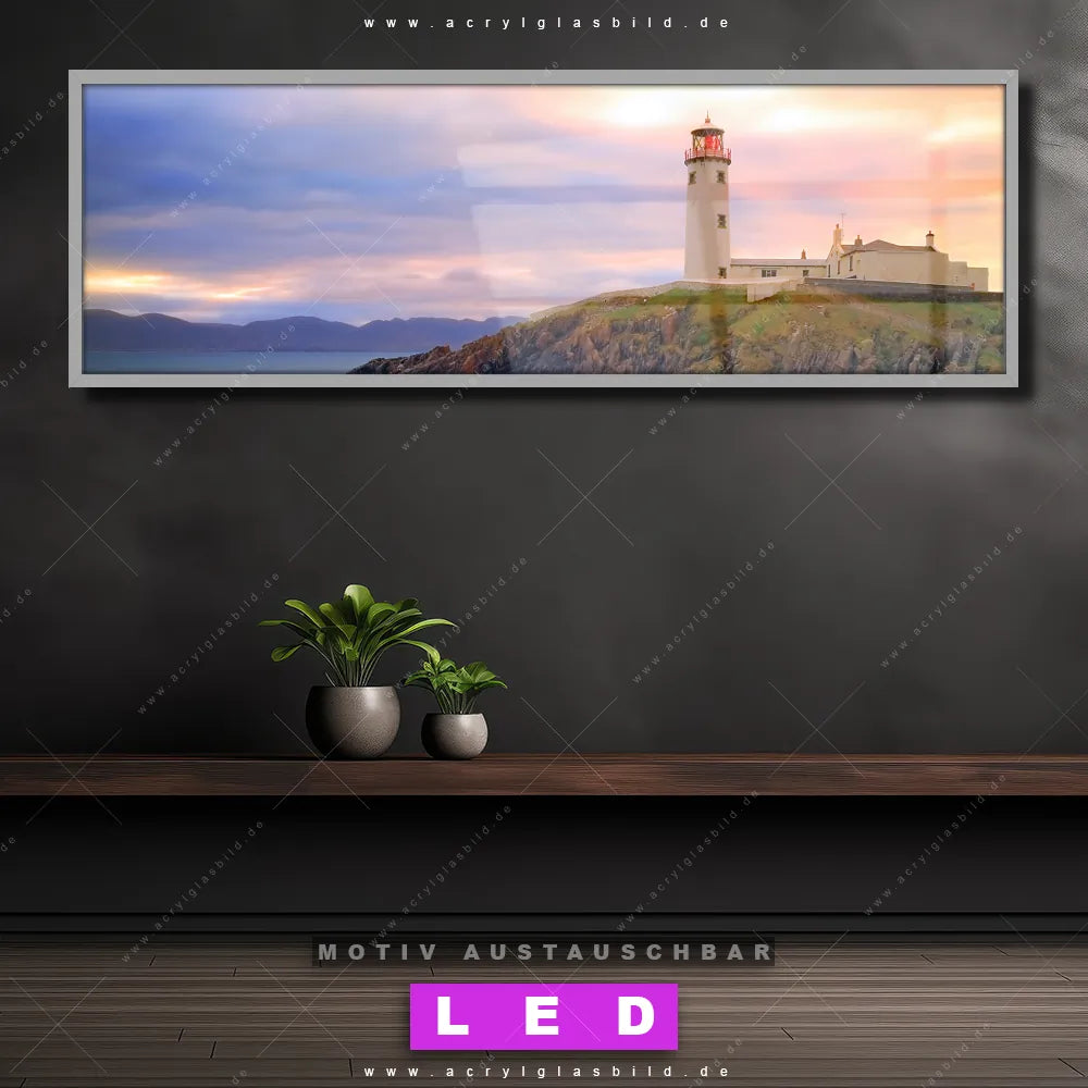 LED Acrylglasbild Canvalight® DIA | Leuchtturm bei stürmischer See | Panorama