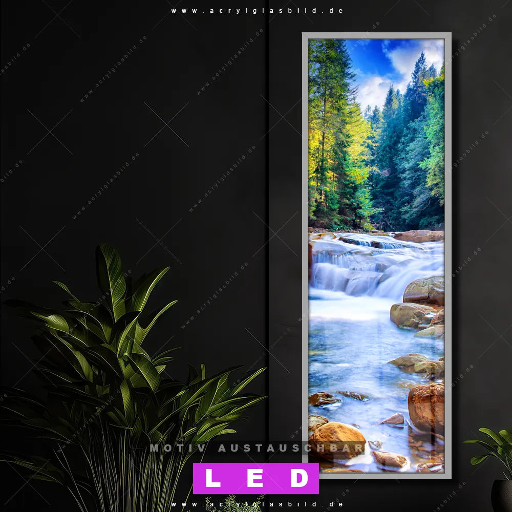 LED Acrylglasbild Canvalight® DIA | Schöner Wasserfall im Wald | Schmal