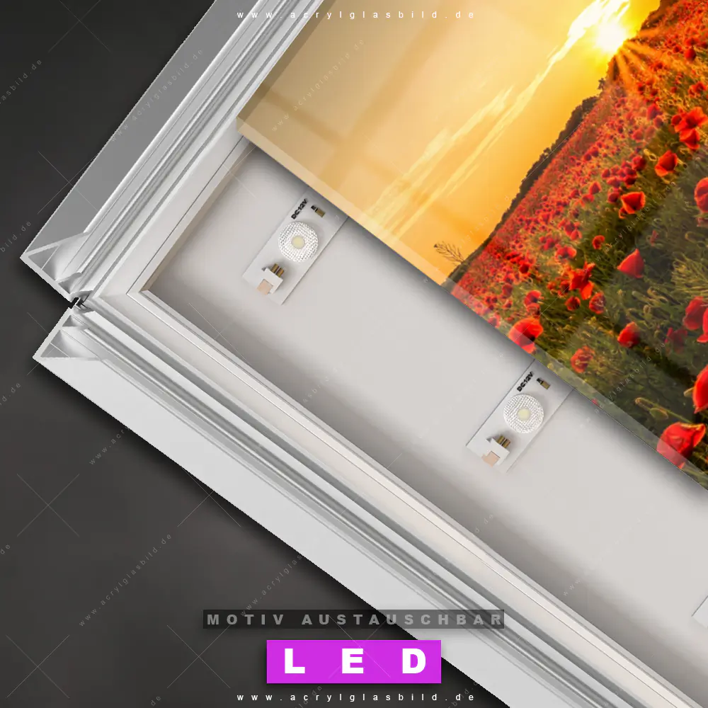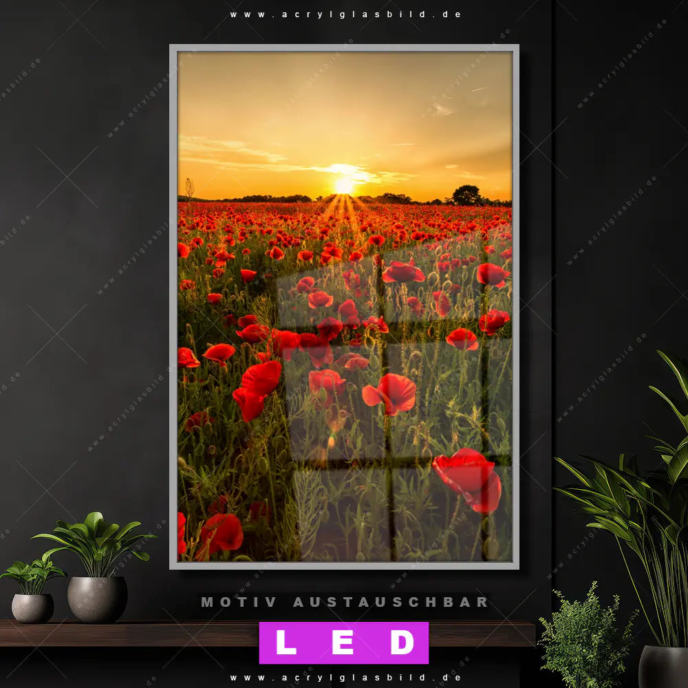 Na, worauf wartest du noch? Mach deine Wände zum Star der Show und bestelle jetzt das Canvalight® DIA LED Acrylglasbild Magischer Abend im Mohnfeld. Deine Wände werden es dir danken und deine Freunde werden dank der wechselbaren Motive vor Neid platzen!
