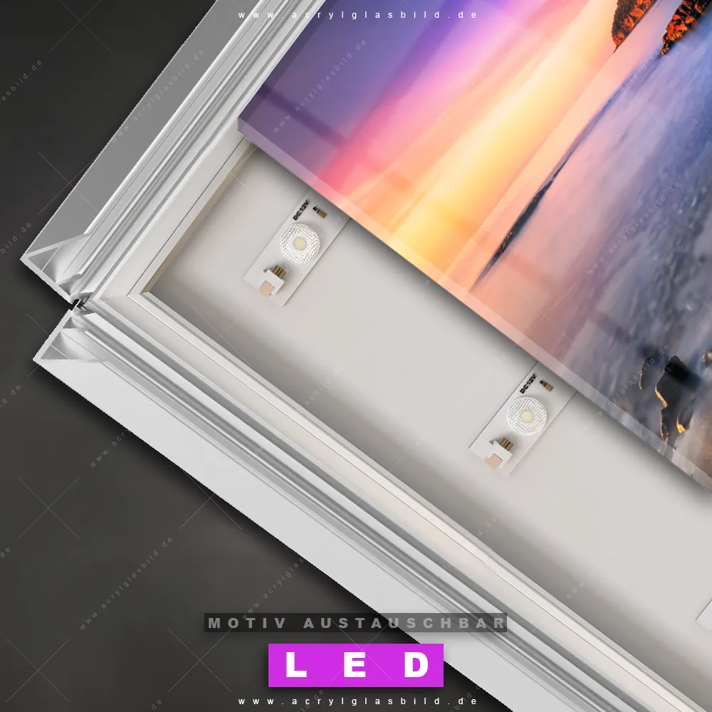 Also, worauf wartest du noch? Gib mit einem beleuchteten Wandbild mit wechselbarer Acrylglas-Scheibe deinen Wänden das gewisse Etwas und bestelle jetzt das LED Acrylglasbild Canvalight® DIA Himmel und Meer umhüllt von Sonnenuntergangsfarben – dein Zuhause wird es dir danken und deine Freunde werden dank der wechselbaren Motive erblassen!