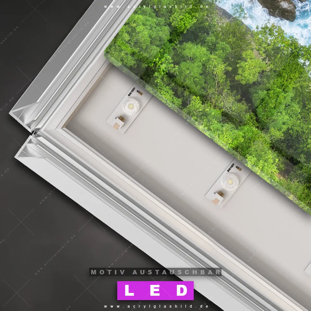 Na, worauf wartest du noch? Mach deine Wände zum Star der Show und bestelle jetzt das Canvalight® DIA LED Acrylglasbild Küstenlandschaft Wald. Deine Wände werden es dir danken und deine Freunde werden dank der wechselbaren Motive vor Neid platzen!