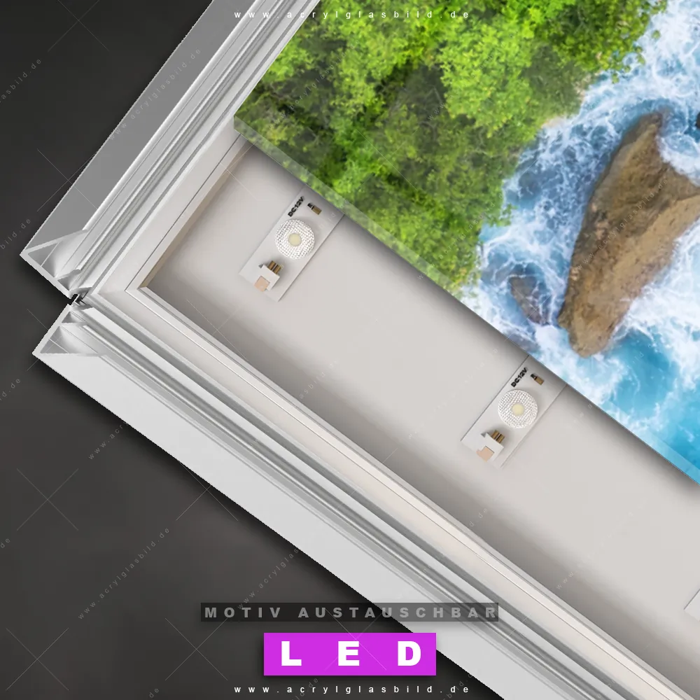 Also, worauf wartest du noch? Verwandle deine Wände mit einem LED Leuchtbild in wahre Kunstwerke und bestelle jetzt das Canvalight® DIA LED Acrylglasbild Küstenlandschaft Wald. Deine Wände werden strahlen, und deine Freunde werden dank der wechselbaren Motive staunen!