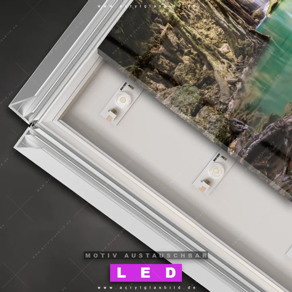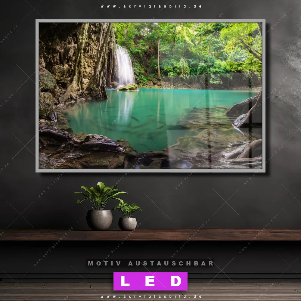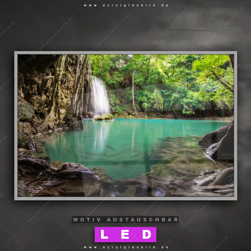 Du bist auf der Suche nach einem dimmbaren Landschaften LED Bild mit Fernbedienung und optionaler Farbtemperatursteuerung? Dann haben wir hier genau das richtige Wandbild mit LED Beleuchtung für dich: Unser Canvalight® DIA LED Acrylglasbild Wald & Wasserfall No. 4 im Querformat mit austauschbarer bedruckter Acrylglas-Scheibe. Dieses Leuchtbild bringt sofort Partybeleuchtung in deine Räume!