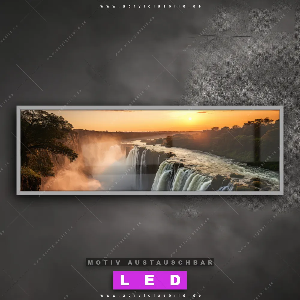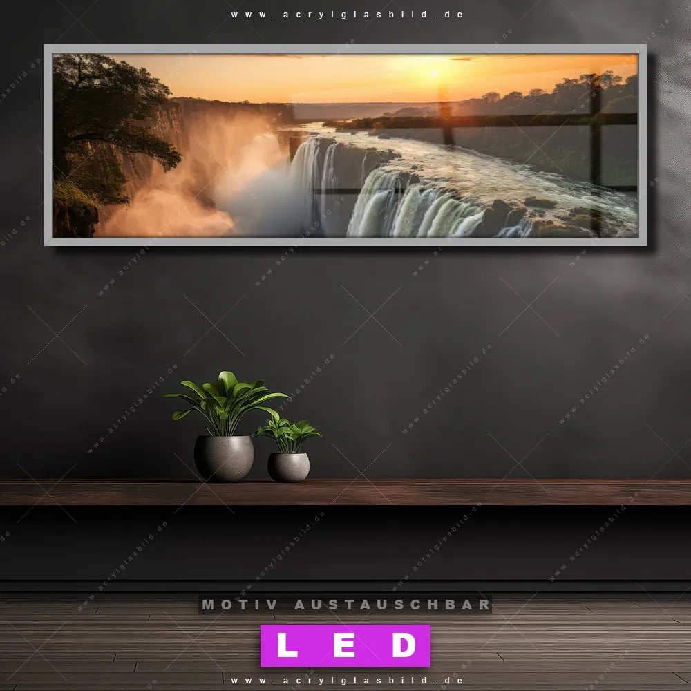 LED Acrylglasbild Canvalight® DIA | Wasserfall bei Abendsonne | Panorama