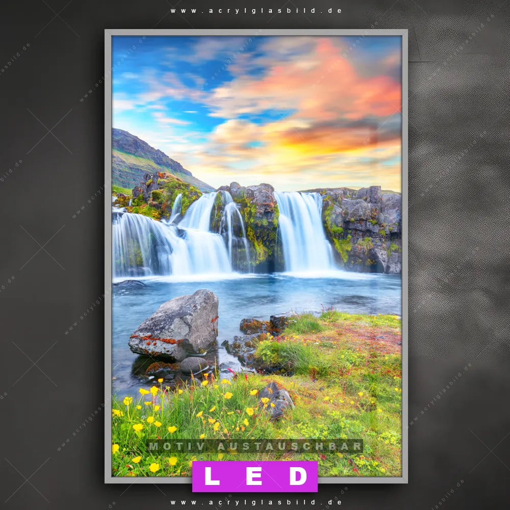 LED Acrylglasbild Canvalight® DIA | Wasserfall bei Sonnenuntergang | Hochformat