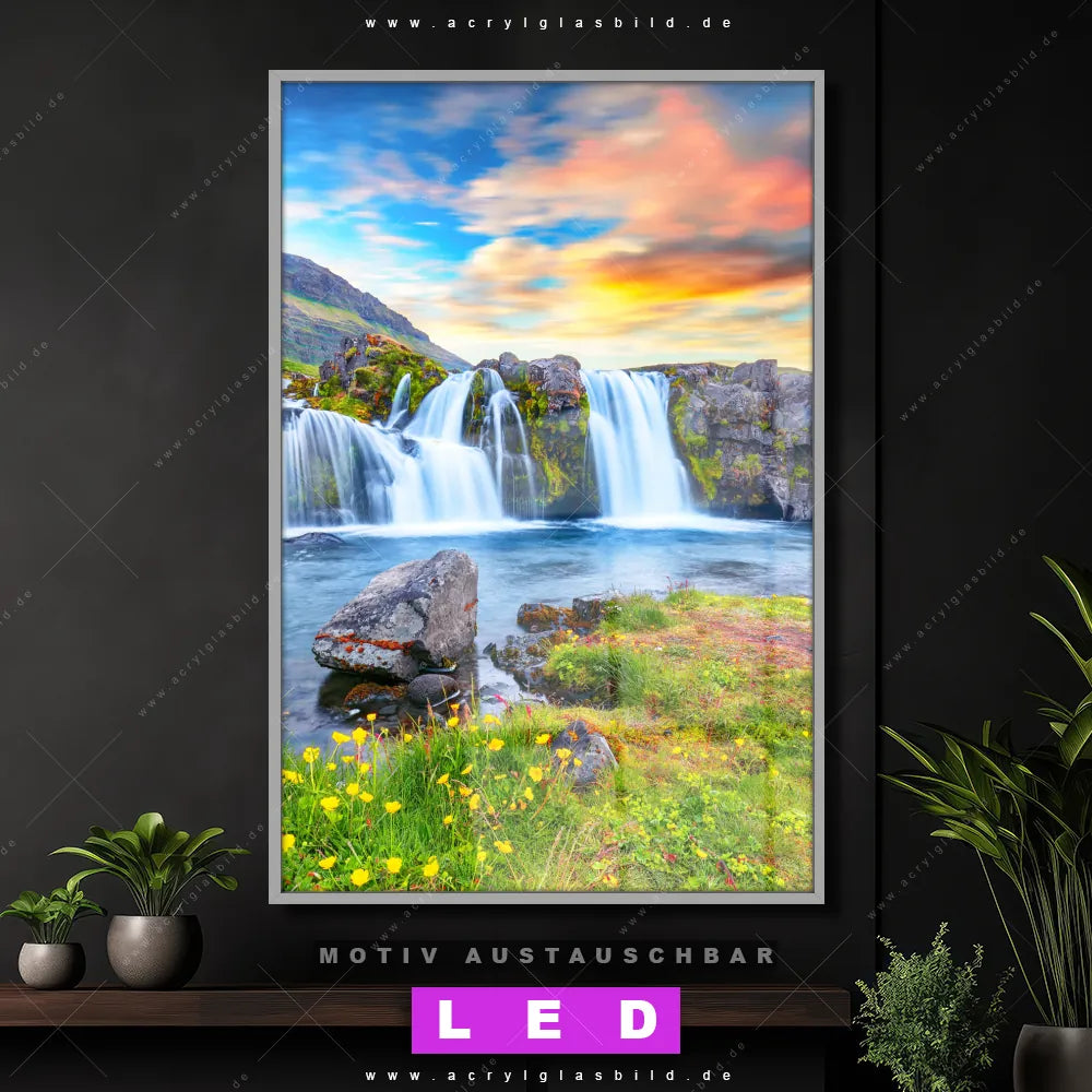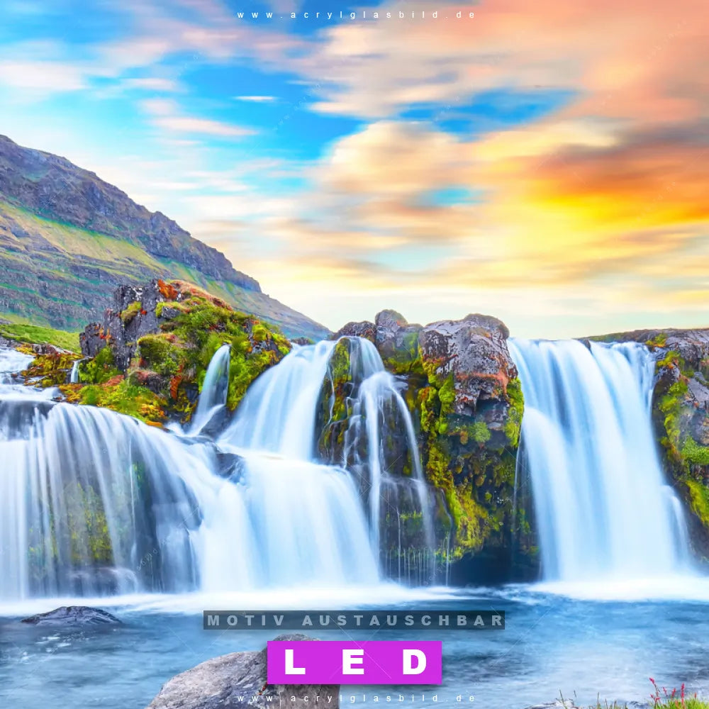 Na, worauf wartest du noch? Mach deine Wände zum Star der Show und bestelle jetzt das Canvalight® DIA LED Acrylglasbild Sonnenuntergang im Gebirge mit Wasserfall. Deine Wände werden es dir danken und deine Freunde werden dank der wechselbaren Motive vor Neid platzen!