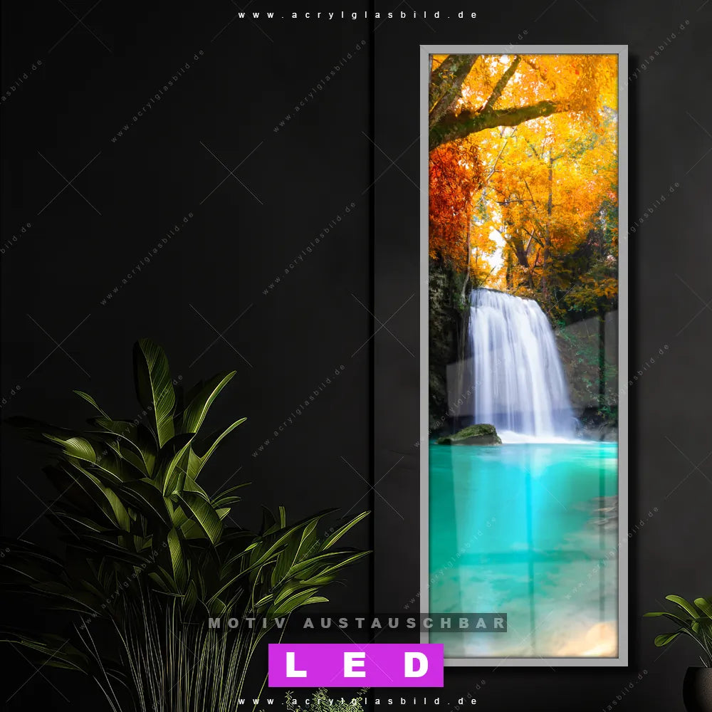 Vergiss dunkle Ecken und langweilige Wände in Wohnzimmer - Schlafzimmer, Badezimmer, Arzt - Praxis, Büro - Kanzlei, Flur - Eingangsbereich, Friseur - Beauty! Mit unserem LED Acrylglasbild Canvalight® DIA Herbstlicher Wasserfall wirst du nie wieder im Dunkeln tappen. Suchst du nach einem beleuchteten Wandbild mit Wasserfall, Landschaft, Natur, Herbst, Wald? Dann ist unser Leuchtbild Herbstfarben am Waldwasserfall mit den strahlenden Motiv-Farben Rot, Orange, Türkis, Braun genau das richtige LED Bild für dich. Egal, ob dein Stil minimalistisch oder exotisch ist, dieses LED Leuchtbild im Natürlich - Realistisch Stil mit DIA-Klapprahmen und glänzender Front aus Acrylglas passt perfekt zu jeder Einrichtung.