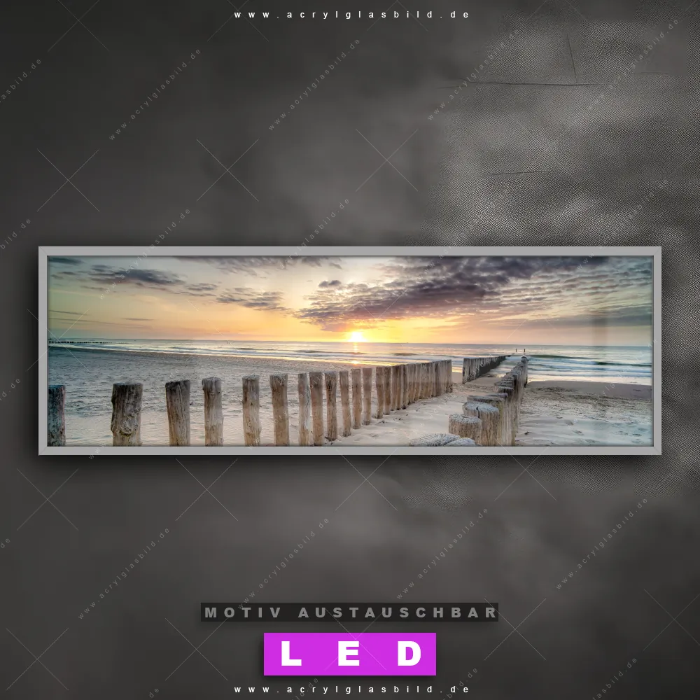 LED Acrylglasbild Canvalight® DIA | Wellenbrecher am Nordseestrand | Panorama