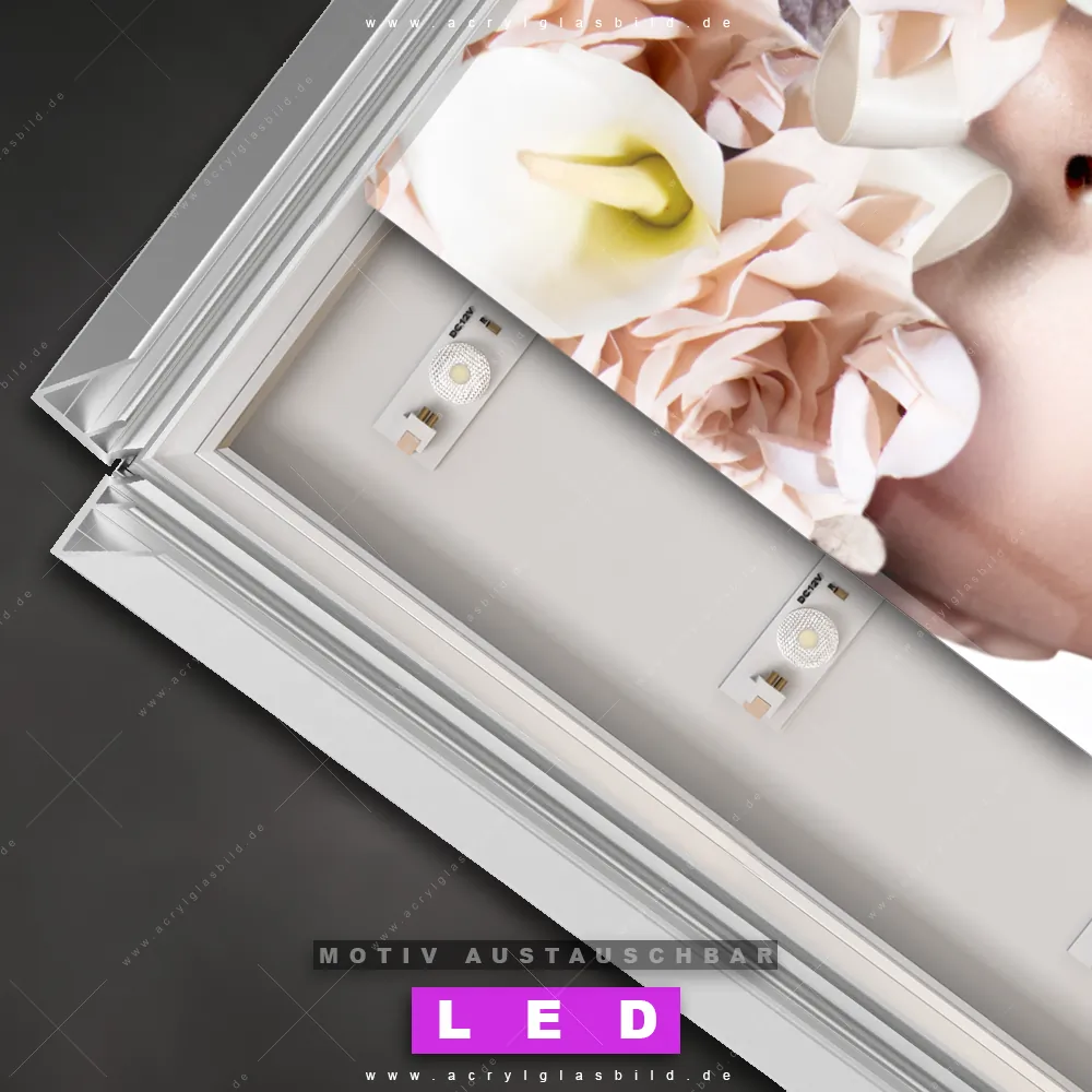 Du suchst nach einem Wandbild mit LED Beleuchtung als ultimativen Hingucker für deine Wände? Dann haben wir das perfekte dimmbare LED Bild mit Fernbedienung und optionaler Farbtemperatursteuerung für dich: unser abgefahrenes Porträts - Menschen, Blumen - Botanik Canvalight® DIA LED Acrylglasbild! Mit dem LED Leuchtbild aus Acrylglas Gesicht & Rosen im Hochformat mit austauschbarer bedruckter Acrylglas-Scheibe bringst du nicht nur Licht, sondern auch ordentlich Stil in deine Bude.