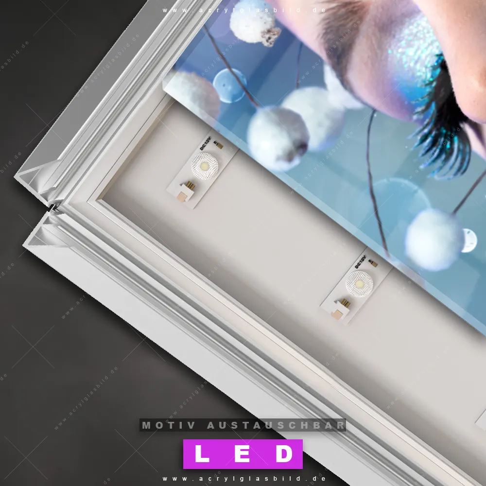 LED Acrylglasbild Canvalight® DIA | Schönheit in Blau & Weiss | Hochformat
