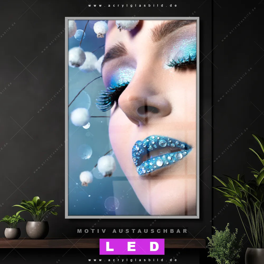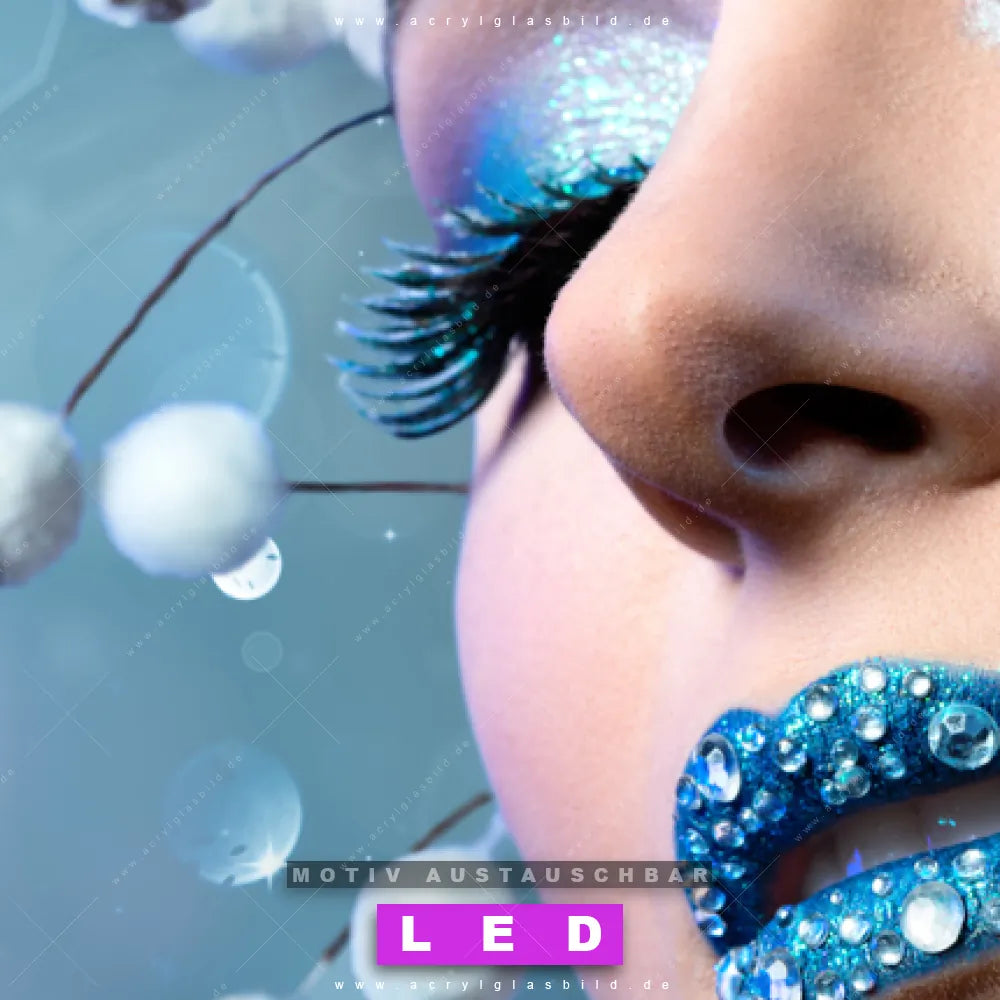 Du suchst nach einem Wandbild mit LED Beleuchtung als ultimativen Hingucker für deine Wände? Dann haben wir das perfekte dimmbare LED Bild mit Fernbedienung und optionaler Farbtemperatursteuerung für dich: unser abgefahrenes Porträts - Menschen Canvalight® DIA LED Acrylglasbild! Mit dem LED Leuchtbild aus Acrylglas Schönheit in Blau & Weiss im Hochformat mit austauschbarer bedruckter Acrylglas-Scheibe bringst du nicht nur Licht, sondern auch ordentlich Stil in deine Bude.