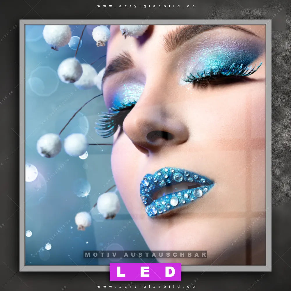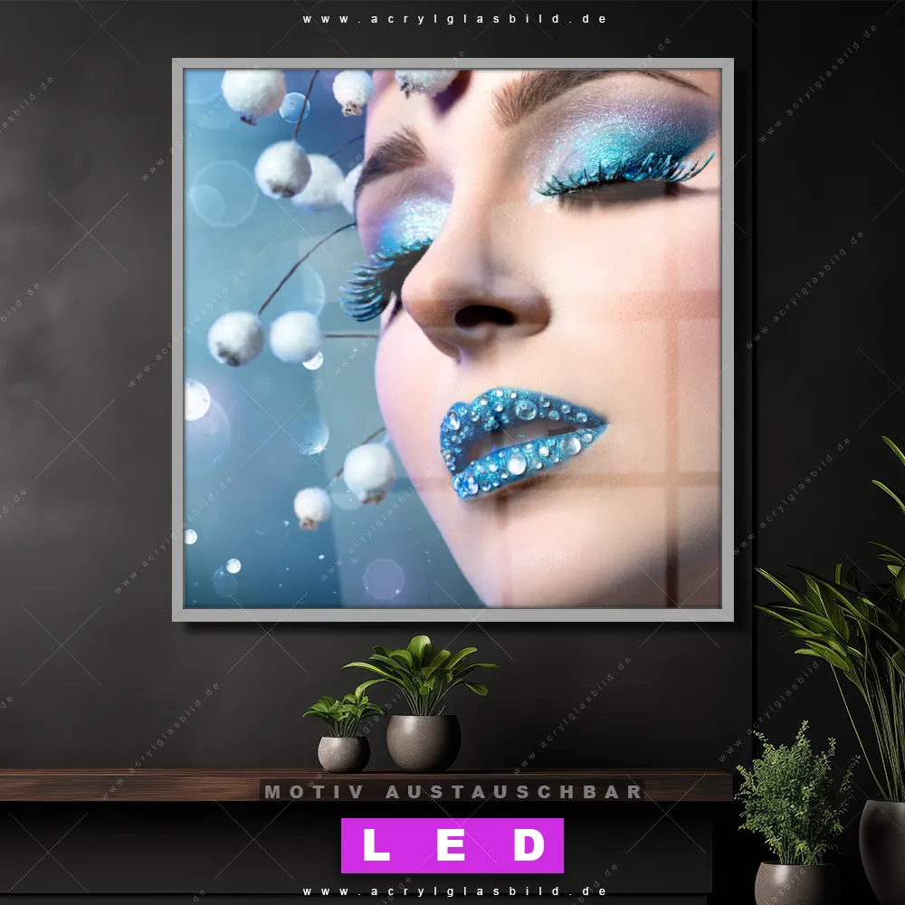 Bist du bereit, deine Wände mit einem dimmbaren LED Bild mit Fernbedienung und optionaler Farbtemperatursteuerung zum Leuchten zu bringen? Wir haben das ultimative Porträts - Menschen LED Acrylglasbild Canvalight® DIA für dich! Unser LED Wandbild aus Acrylglas Schönheit in Blau & Weiss im Quadratischen Format mit austauschbarer bedruckter Acrylglas-Scheibe im DIA-Klapprahmen bringt sofort jede Menge Glanz in deine vier Wände.