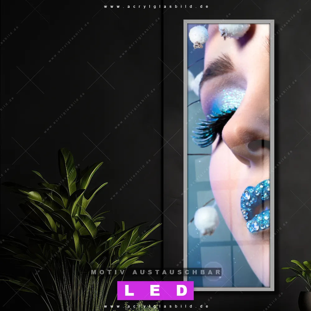 Bist du bereit, deine Wände mit einem dimmbaren LED Bild mit Fernbedienung und optionaler Farbtemperatursteuerung auf das nächste Level zu bringen? Unser Porträts - Menschen Canvalight® DIA LED Acrylglasbild ist genau das, was du brauchst! Das Wandbild mit LED Beleuchtung im Schmalen Format mit austauschbarer bedruckter Acrylglas-Scheibe Schönheit in Blau & Weiss bringt Licht und Stil in dein Zuhause – und das in null Komma nichts!