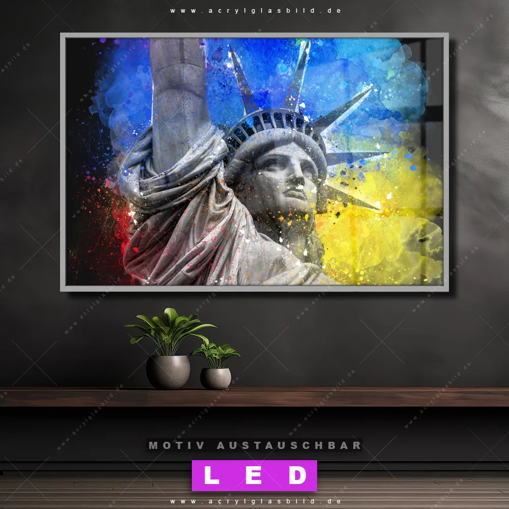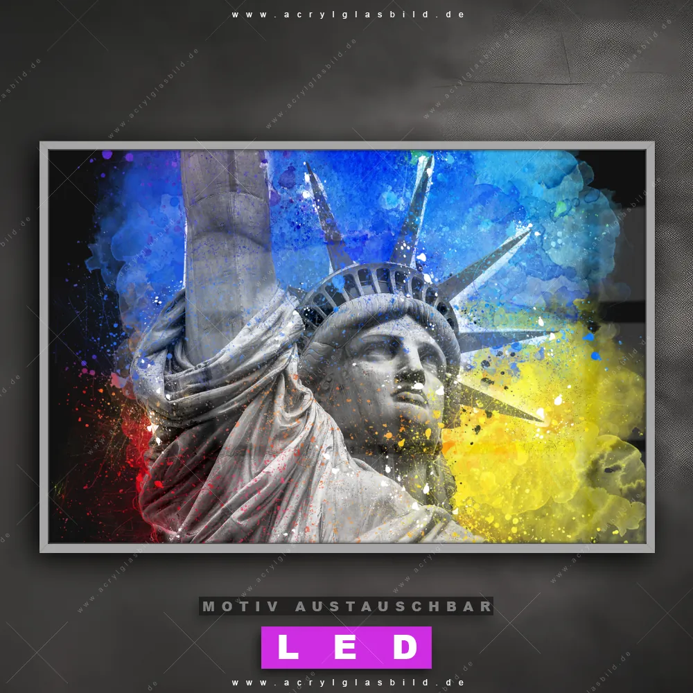 LED Acrylglasbild Canvalight® DIA | Freiheitsstatue Pop Art No.2 | Querformat