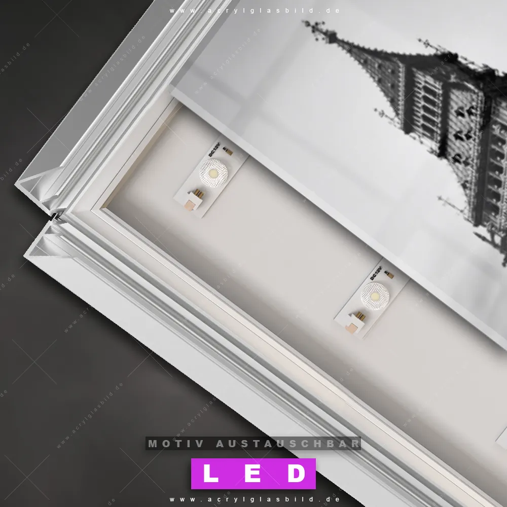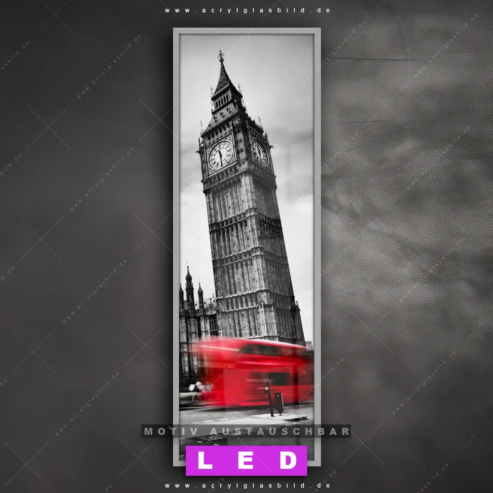 Bist du bereit, deine Wände mit einem dimmbaren LED Bild mit Fernbedienung und optionaler Farbtemperatursteuerung auf das nächste Level zu bringen? Unser Städte - Skylines Canvalight® DIA LED Acrylglasbild ist genau das, was du brauchst! Das Wandbild mit LED Beleuchtung im Schmalen Format mit austauschbarer bedruckter Acrylglas-Scheibe London in Bewegung bringt Licht und Stil in dein Zuhause – und das in null Komma nichts!