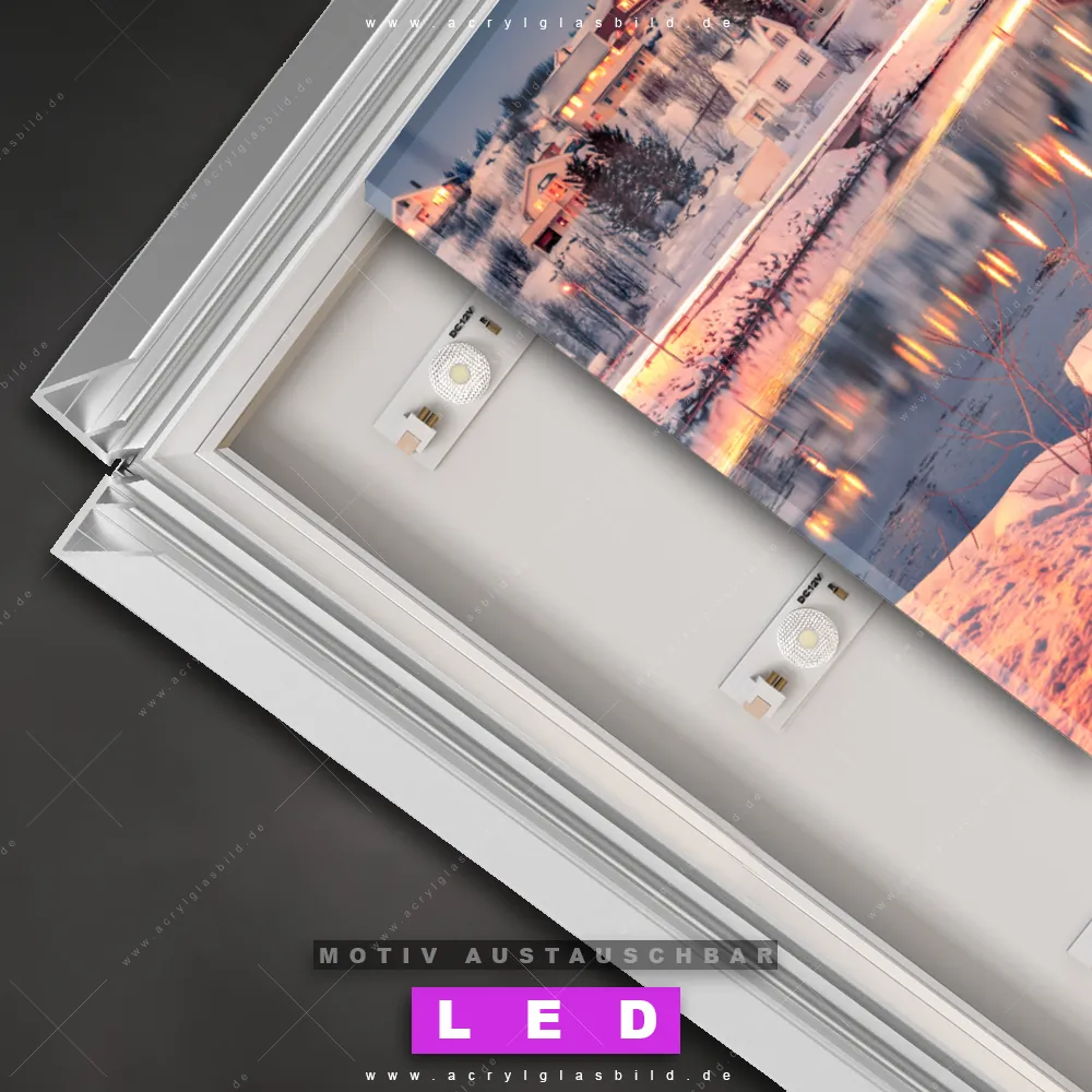 LED Acrylglasbild Canvalight® DIA | Skandinavische Stadt bei Nacht | Querformat