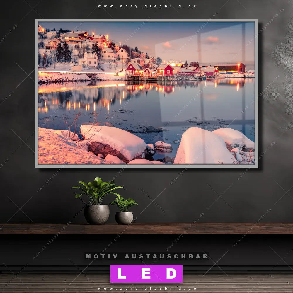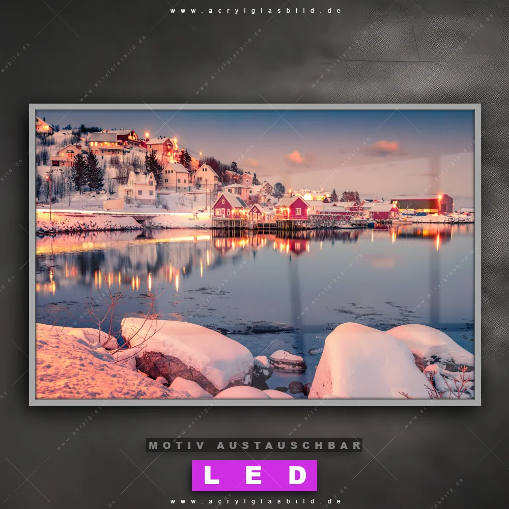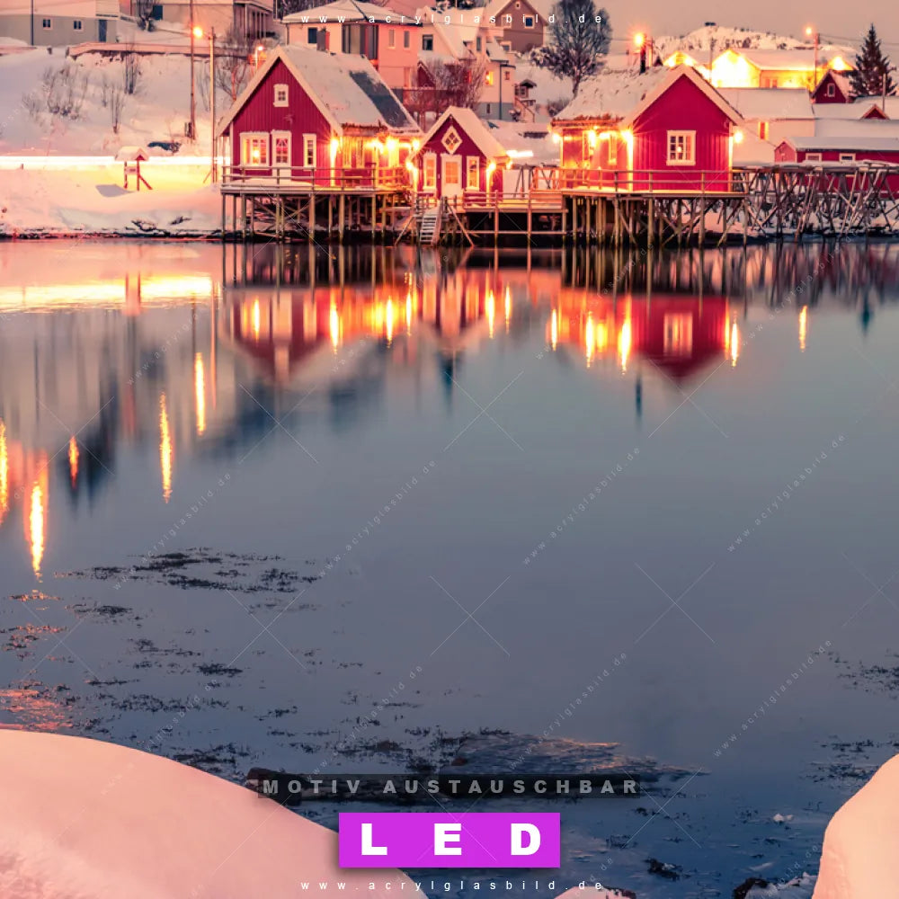 Mit unserem LED Acrylglasbild Canvalight® DIA Rotlichtlaternen in Küstenstadt und seiner genialen LED-Ausleuchtung wirst du nie wieder im Dunkeln auf deinem Sofa herumtappen. Wenn du nach einem beleuchteten Wandbild aus Acrylglas mit Winter, Norwegen, Skandinavien, See, Berg, Haus, Dorf, Sonnenuntergang, Natur für Wohnzimmer - Schlafzimmer, Büro - Kanzlei, Arzt - Praxis suchst, ist unser LED Leuchtbild Abenddämmerung auf Lofoten-Insel in den beeindruckenden Motiv-Farben Blau, Rot, Weiss genau das richtige beleuchtete Wandbild für dich. Gestaltet im Natürlich - Realistisch Stil, passt dieses LED Wandbild mit DIA-Klapprahmen und glänzender Front aus Acrylglas perfekt zu jedem Einrichtungsstil – sogar zu deinem chaotischen kreativen Durcheinander!