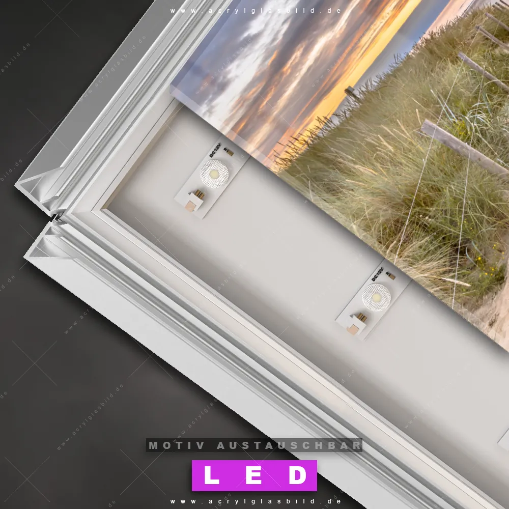 Du bist auf der Suche nach einem dimmbaren Strand - Meer, Landschaften LED Bild mit Fernbedienung und optionaler Farbtemperatursteuerung? Dann haben wir hier genau das richtige Wandbild mit LED Beleuchtung für dich: Unser Canvalight® DIA LED Acrylglasbild Dünen am Nordseestrand No.2 im Querformat mit austauschbarer bedruckter Acrylglas-Scheibe. Dieses Leuchtbild bringt sofort Partybeleuchtung in deine Räume!