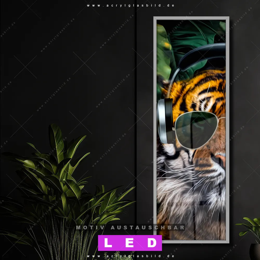 Also, warum noch zögern? Mach deine Wände mit einem Leuchtbild zum absoluten Hingucker und bestelle jetzt das Canvalight® DIA LED Acrylglasbild Tiger mit Kopfhörern. Deine Wände werden leuchten, und deine Freunde werden dank der wechselbaren Motive beeindruckt sein!