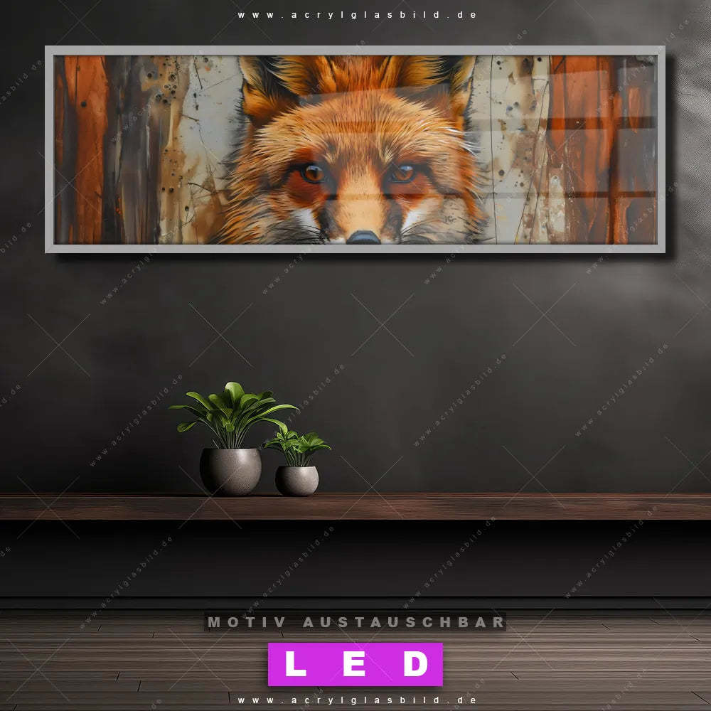 Wer will schon dunkle, triste Wände? Mit unserem LED Acrylglasbild Canvalight® DIA Der Rotfuchs - Wilde Schönheit und seiner fantastischen LED-Ausleuchtung werden deine Wände in Arzt - Praxis, Büro - Kanzlei, Wohnzimmer - Schlafzimmer zu echten Hinguckern. Wenn du auf der Suche nach einem beleuchteten Wandbild aus Acrylglas mit Fuchs, Wald, Natur, Rotfuchs, Tier, Shabby, Tierporträt bist, dann solltest du unser LED Leuchhtbild Fuchs - Blick des Waldes mit den beeindruckenden Motiv-Farben Orange, Beige, Rot nicht verpassen. Gestaltet im angesagten Grunge, Abstrakt, Modern Art Stil, passt das LED Bild mit DIA-Klapprahmen und wechselbarer Acrylglas-Scheibe perfekt zu jedem Einrichtungsstil – selbst in deinem kleinen Dschungel aus Kreativität und Chaos!