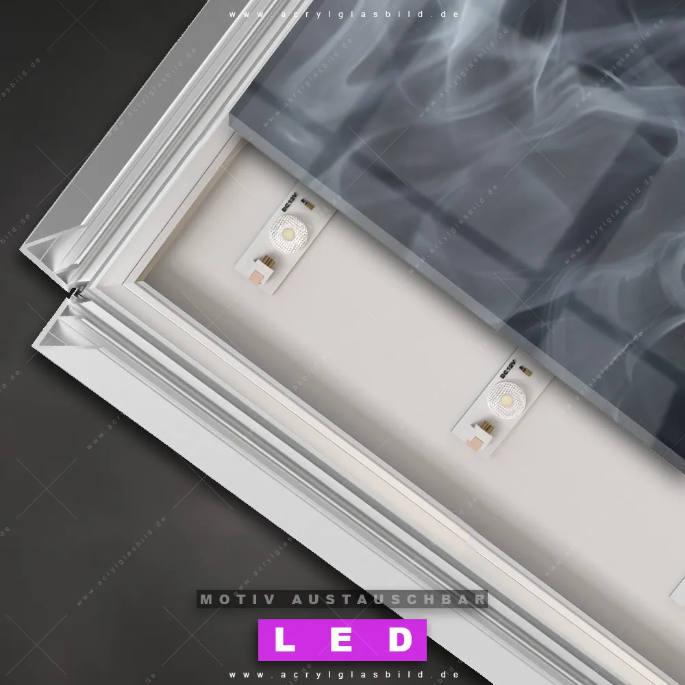 Wer will schon dunkle, triste Wände? Mit unserem LED Acrylglasbild Canvalight® DIA Nebelverhüllter Hirsch im Wald und seiner fantastischen LED-Ausleuchtung werden deine Wände in Büro - Kanzlei, Wohnzimmer - Schlafzimmer, Flur - Eingangsbereich zu echten Hinguckern. Wenn du auf der Suche nach einem beleuchteten Wandbild aus Acrylglas mit Hirsch, Nebel, Geweih, Magie, Rotwild, Wald, Rothirsch, Rauch, Qualm bist, dann solltest du unser LED Leuchhtbild Magischer Hirsch mit Rauch mit den beeindruckenden Motiv-Farben Schwarz nicht verpassen. Gestaltet im angesagten Modern Art, Natürlich - Realistisch Stil, passt das LED Bild mit DIA-Klapprahmen und wechselbarer Acrylglas-Scheibe perfekt zu jedem Einrichtungsstil – selbst in deinem kleinen Dschungel aus Kreativität und Chaos!