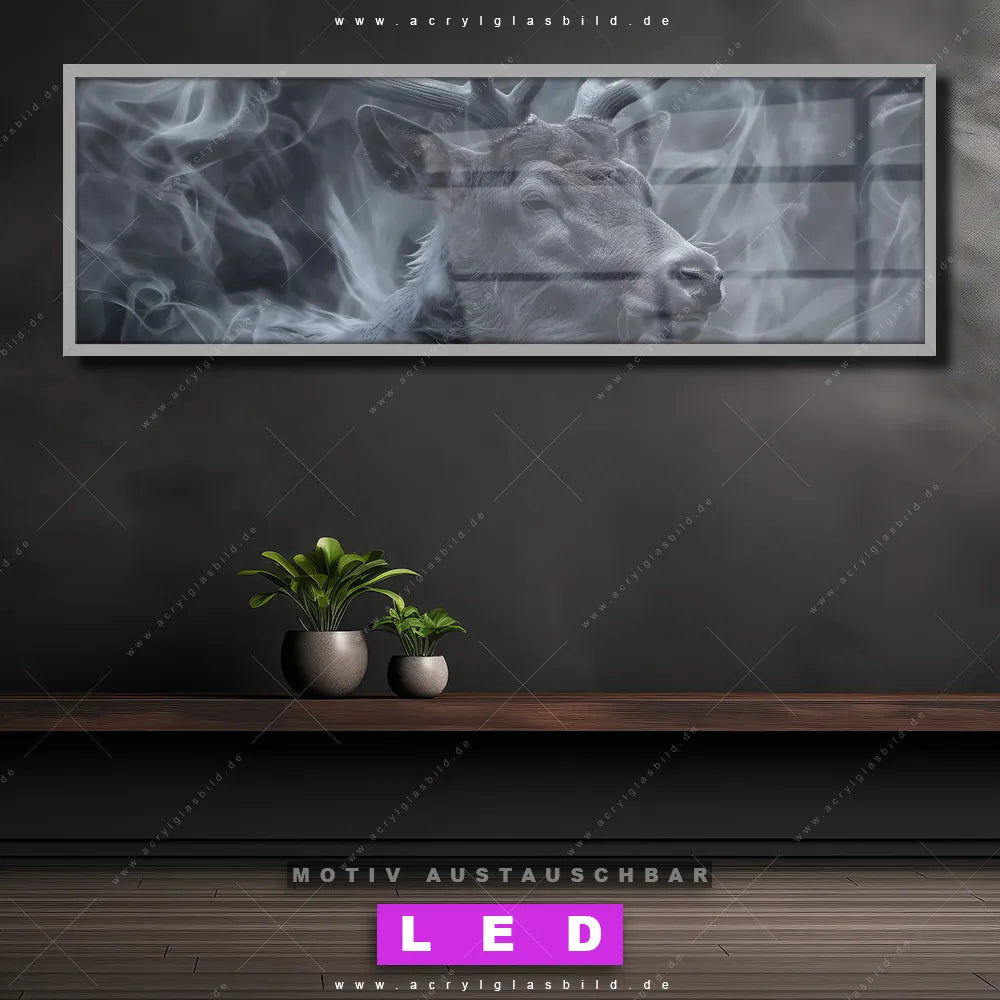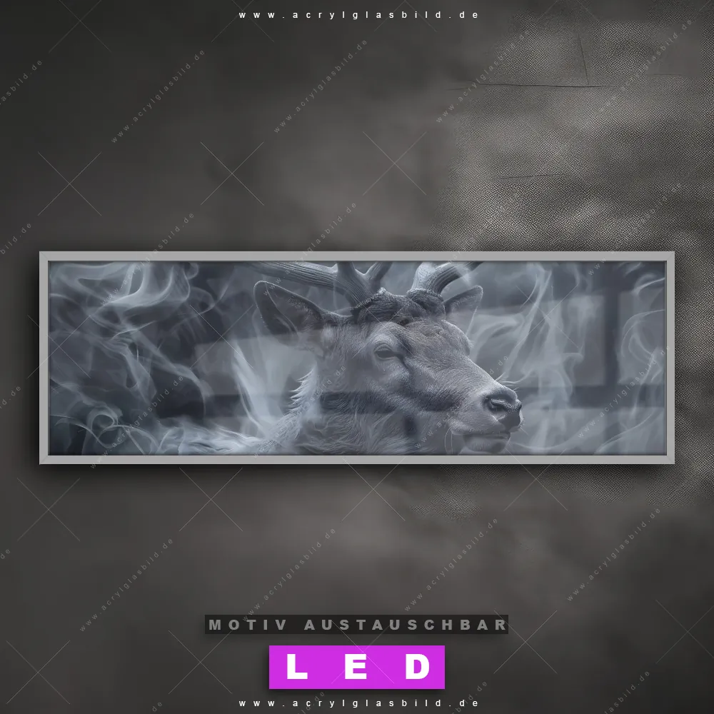 LED Acrylglasbild Canvalight® DIA | Mystischer Hirsch im Nebel | Panorama