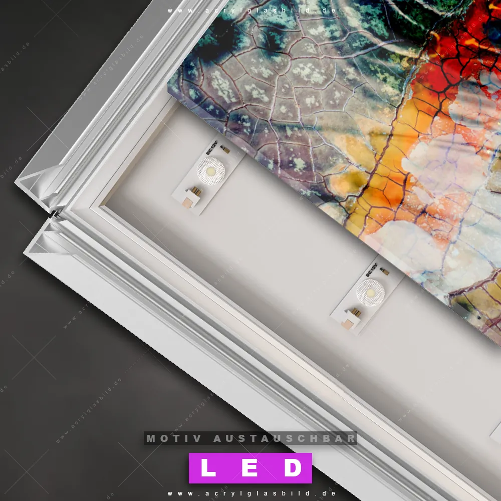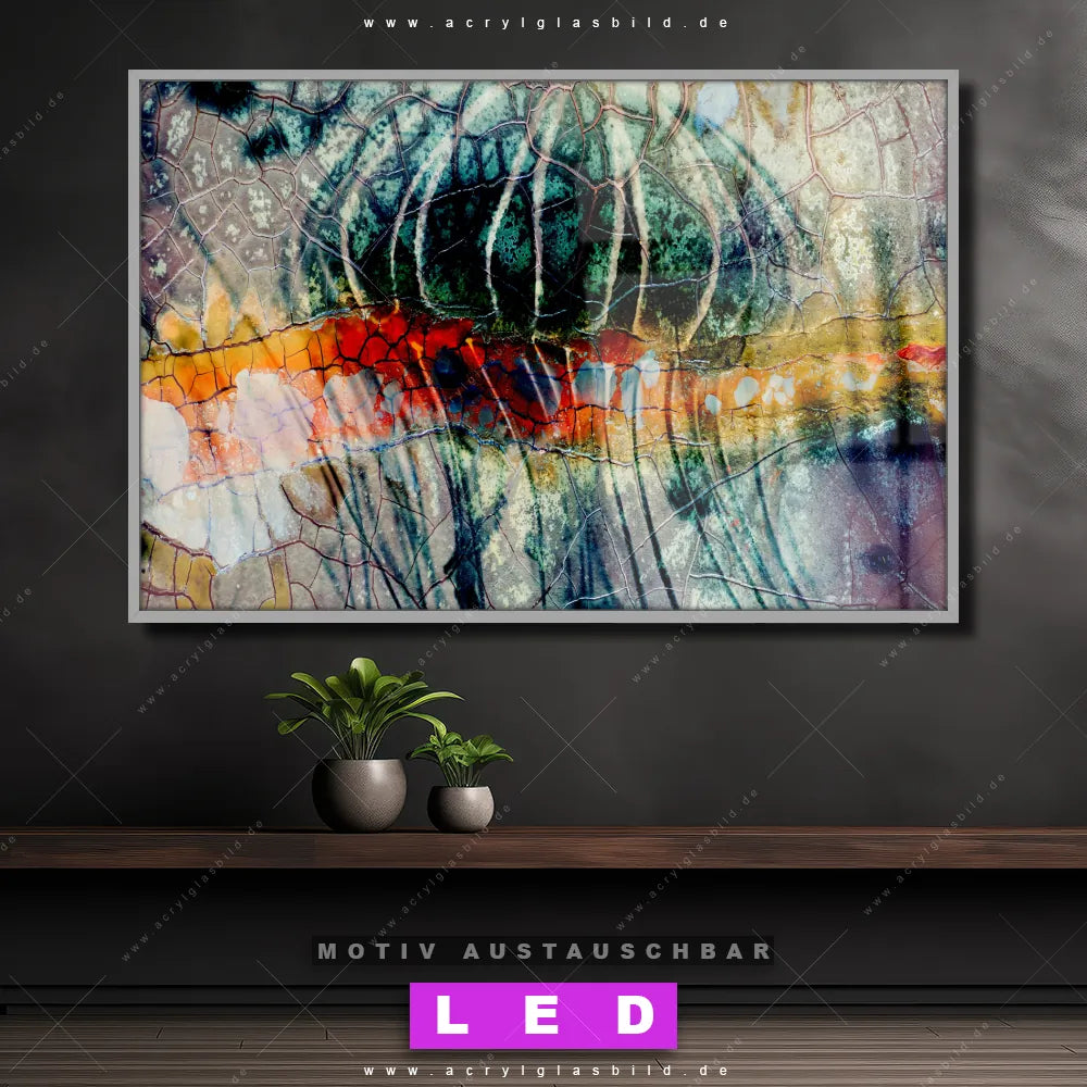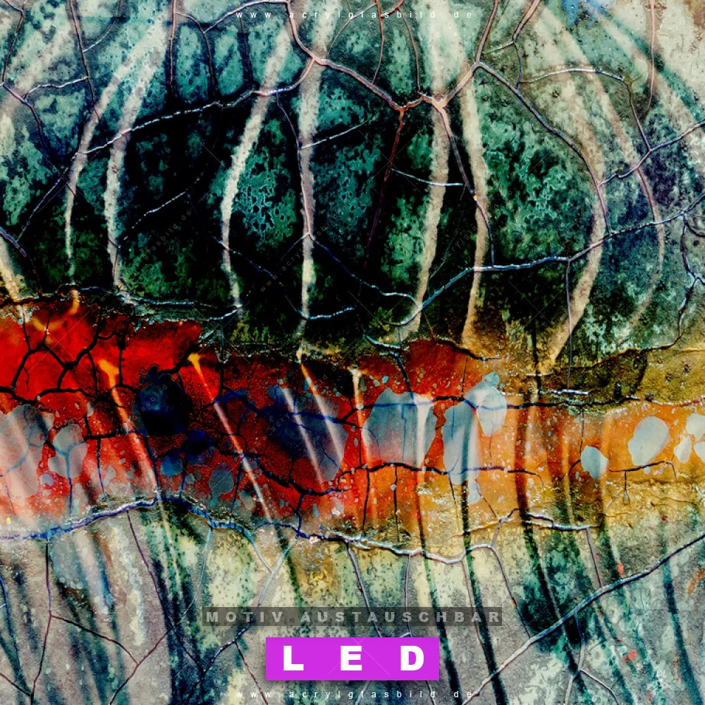 Mit unserem LED Acrylglasbild Canvalight® DIA Farbenspiel der Natur und seiner genialen LED-Ausleuchtung wirst du nie wieder im Dunkeln auf deinem Sofa herumtappen. Wenn du nach einem beleuchteten Wandbild aus Acrylglas mit Abstrakt, Modern, Kunst, Quallen, Unterwasserwelt für Wohnzimmer - Schlafzimmer, Arzt - Praxis, Büro - Kanzlei suchst, ist unser LED Leuchtbild Buntes Terrain & Qualle in den beeindruckenden Motiv-Farben Lila, Orange, Mint, Rot, Grün, Blau, Gelb genau das richtige beleuchtete Wandbild für dich. Gestaltet im Abstrakt, Grunge, Mixed Media, Modern Art Stil, passt dieses LED Wandbild mit DIA-Klapprahmen und glänzender Front aus Acrylglas perfekt zu jedem Einrichtungsstil – sogar zu deinem chaotischen kreativen Durcheinander!