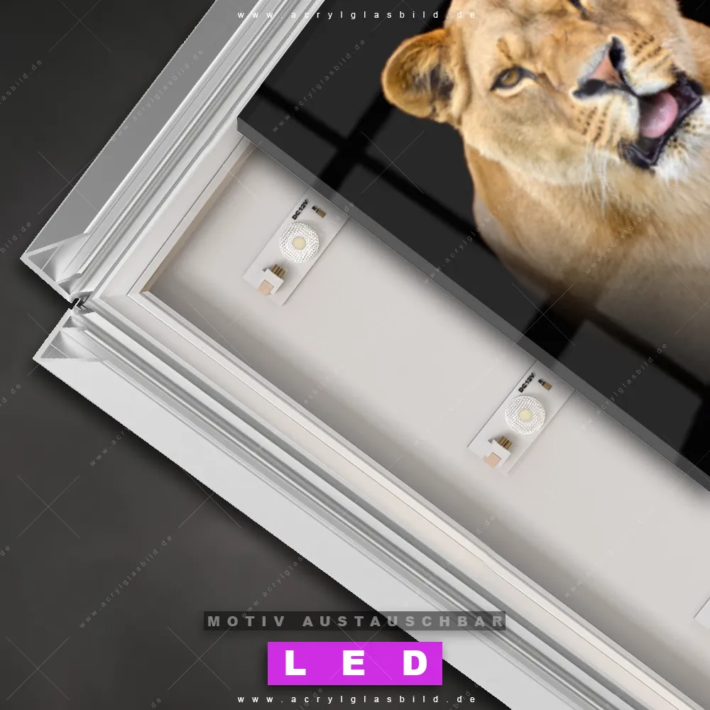 Also, worauf wartest du noch? Verwandle deine Wände mit einem LED Leuchtbild in wahre Kunstwerke und bestelle jetzt das Canvalight® DIA LED Acrylglasbild Löwe, Tiger, Leopard & Schwarzer Panther. Deine Wände werden strahlen, und deine Freunde werden dank der wechselbaren Motive staunen!