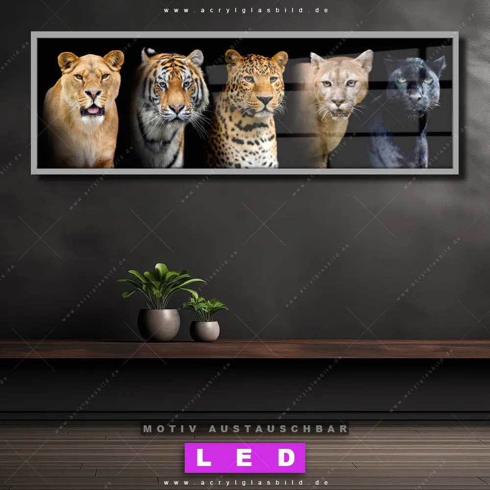 LED Acrylglasbild Canvalight® DIA | Raubkatzen | Panorama