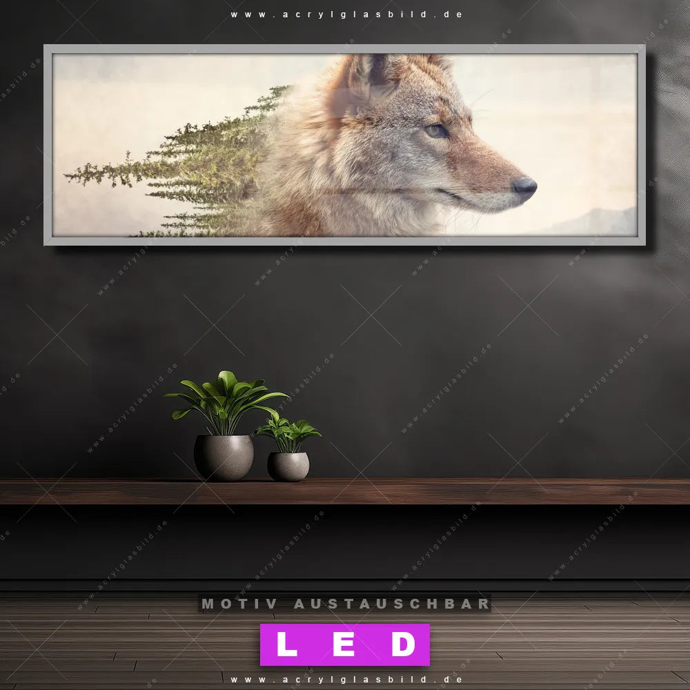 Deine Wände könnten dringend ein dimmbares LED Bild mit Fernbedienung und optionaler Farbtemperatursteuerung gebrauchen? Dann haben wir das perfekte Wandbild mit LED Beleuchtung für dich: unser mega-cooles Tierwelt Canvalight® DIA LED Acrylglasbild! Mit unserem angesagten Leuchtbild aus Acrylglas im Panorama-Format und der austauschbaren bedruckten Acrylglas-Scheibe Fuchs & Wald bringst du nicht nur Licht, sondern auch jede Menge Flair in deine Räume.