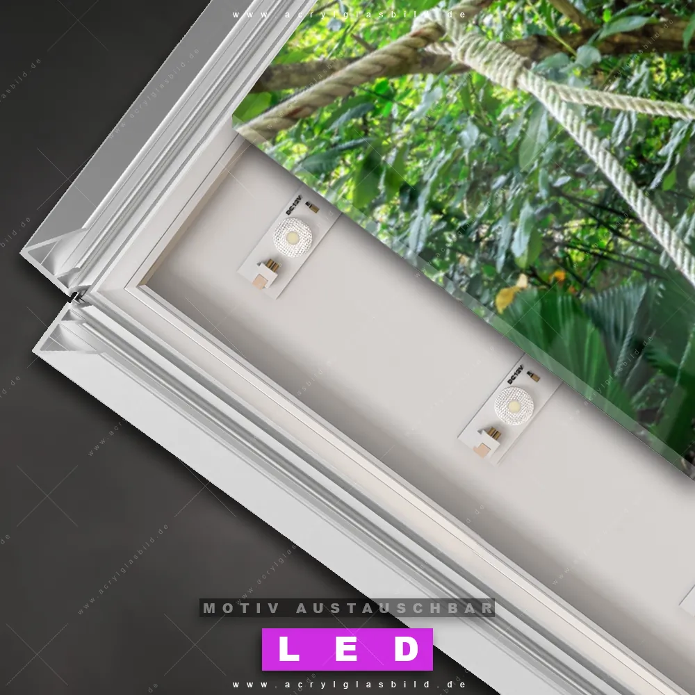 Also, worauf wartest du noch? Verwandle deine Wände mit einem LED Leuchtbild in wahre Kunstwerke und bestelle jetzt das Canvalight® DIA LED Acrylglasbild tropischer Wald mit Hängebrücke. Deine Wände werden strahlen, und deine Freunde werden dank der wechselbaren Motive staunen!