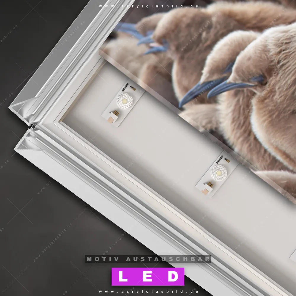 Also, worauf wartest du noch? Verwandle deine Wände mit einem LED Leuchtbild in wahre Kunstwerke und bestelle jetzt das Canvalight® DIA LED Acrylglasbild Baby Pinguine. Deine Wände werden strahlen, und deine Freunde werden dank der wechselbaren Motive staunen!