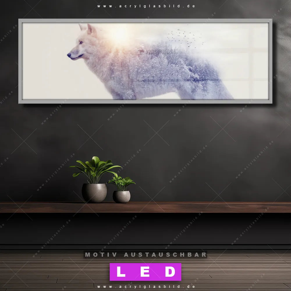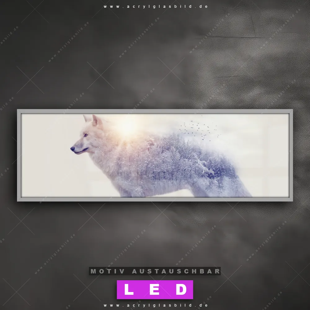 Also, worauf wartest du noch? Verwandle deine Wände mit einem LED Leuchtbild in wahre Kunstwerke und bestelle jetzt das Canvalight® DIA LED Acrylglasbild weißer Wolf mit Wald. Deine Wände werden strahlen, und deine Freunde werden dank der wechselbaren Motive staunen!