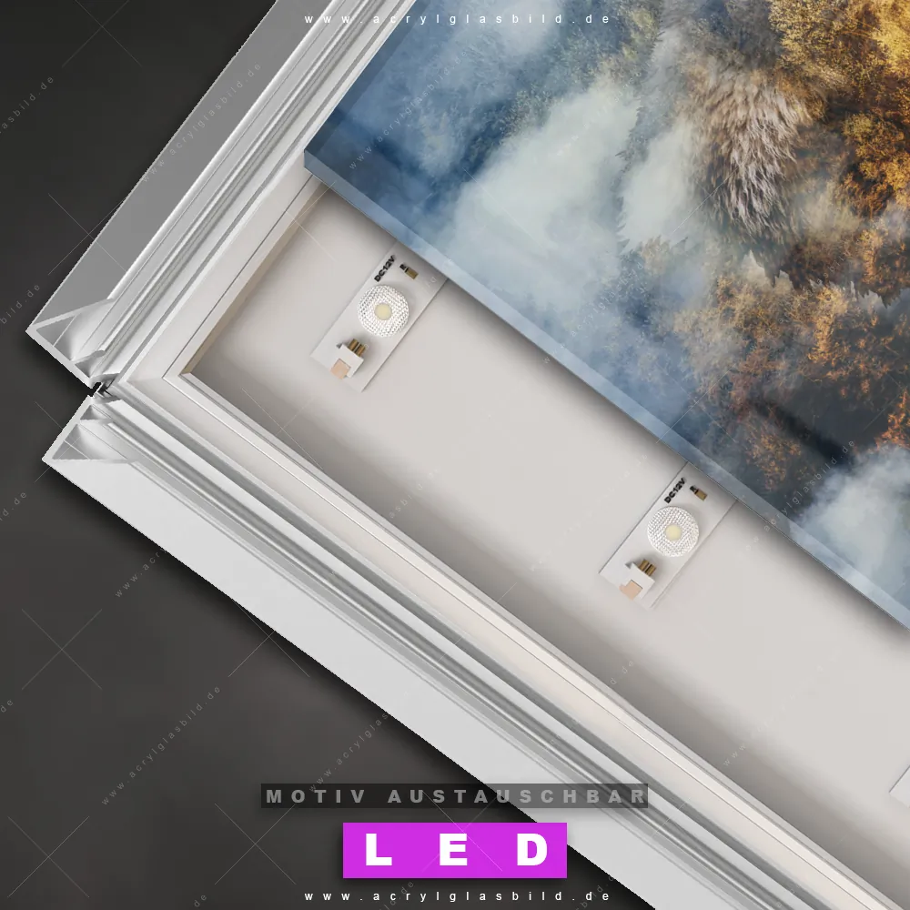 Also, worauf wartest du noch? Gib mit einem beleuchteten Wandbild mit wechselbarer Acrylglas-Scheibe deinen Wänden das gewisse Etwas und bestelle jetzt das LED Acrylglasbild Canvalight® DIA Verbundenheit Wolf und Wald – dein Zuhause wird es dir danken und deine Freunde werden dank der wechselbaren Motive erblassen!