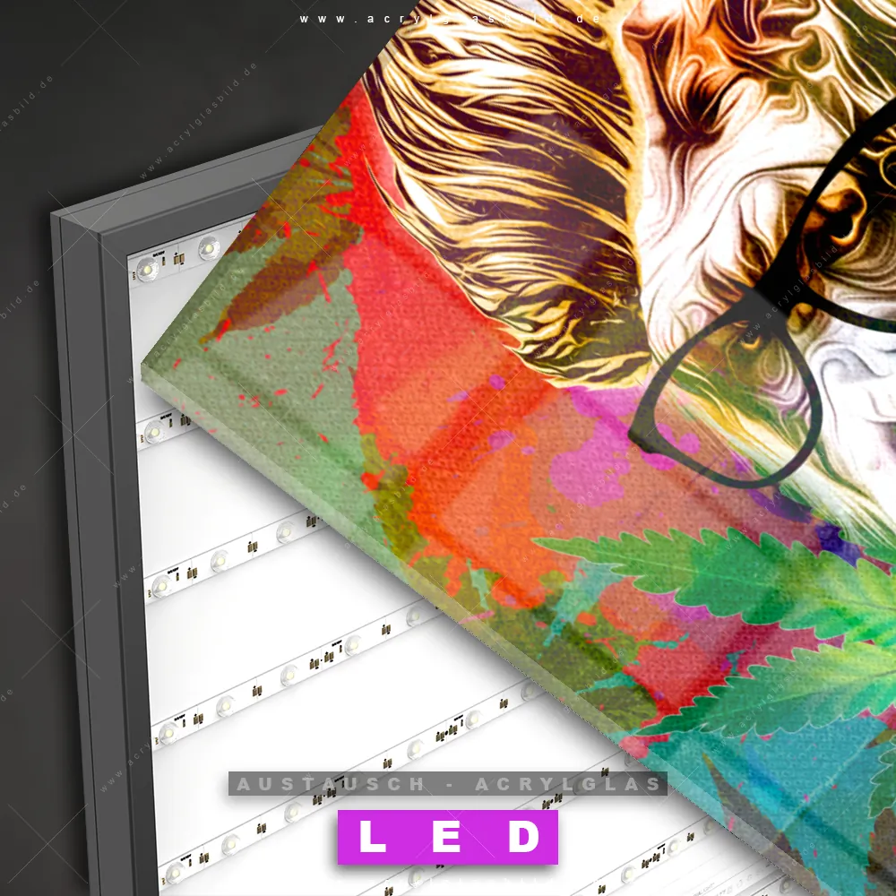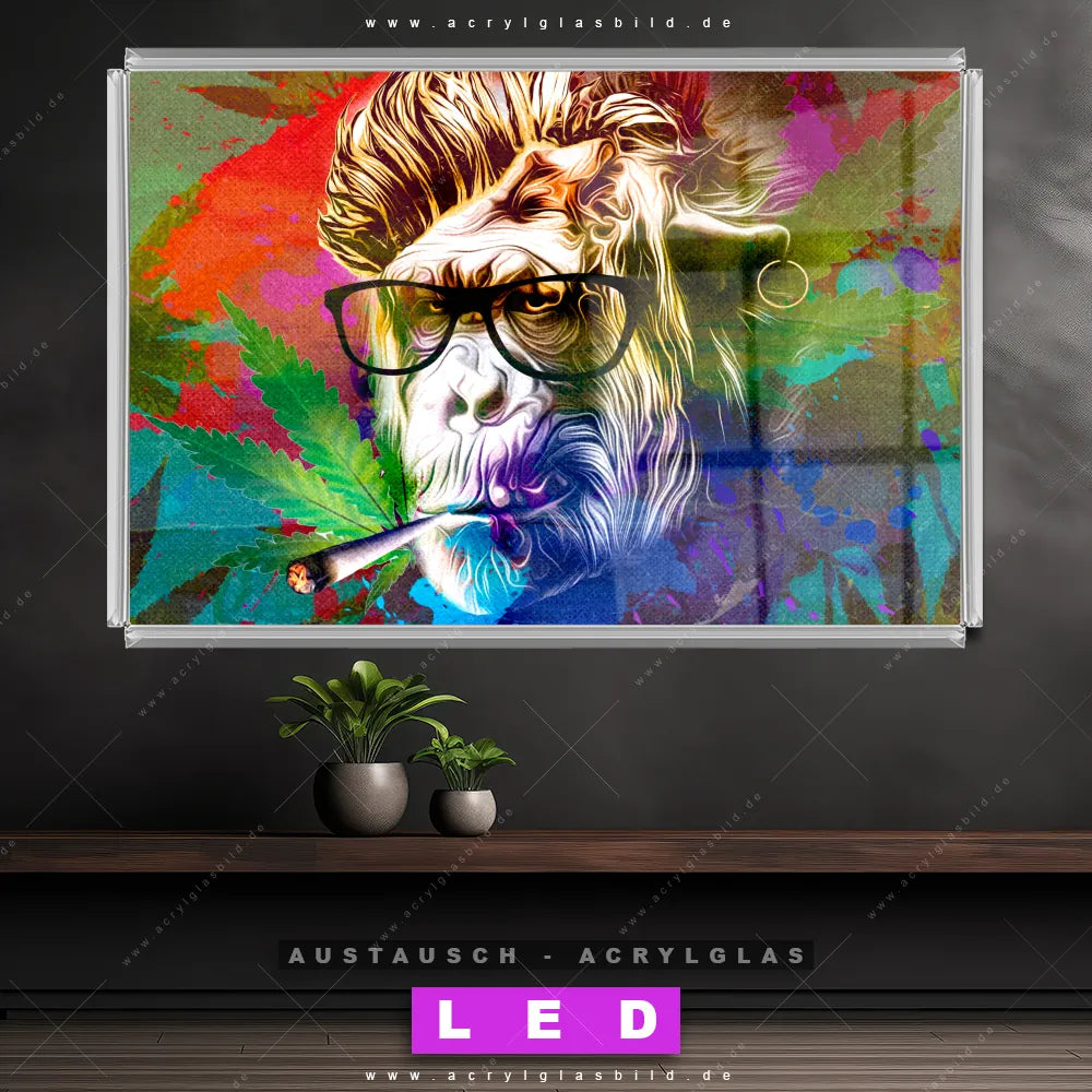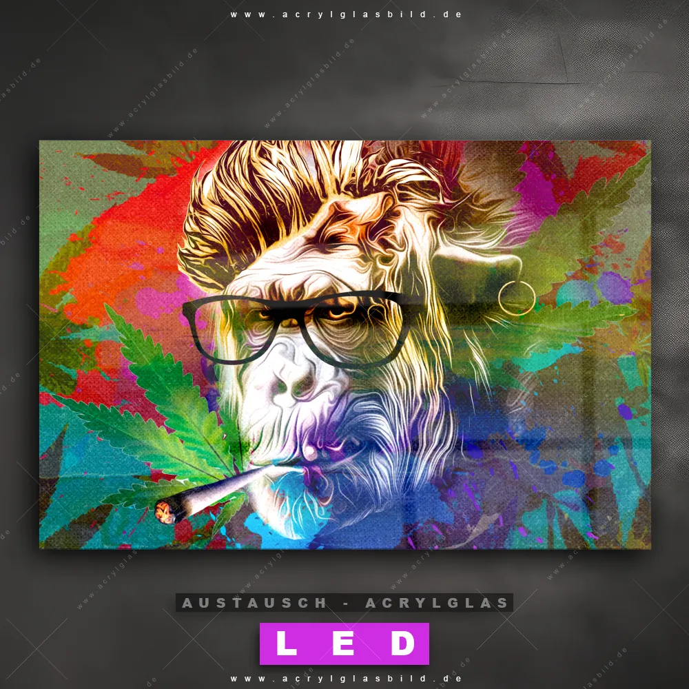 Begriffe wie Tier, Affe, Monkey, Brille, Sonnenbrille, cool, Zigarette, rauchen, Cannabis, Piercing haben dich auf der Suche nach deinem neuen Austausch-Acrylglasbild inspiriert? Dann sollte das Wechsel-Acrylglasbild rauchender Affe mit Brille für dein bereits vorhandenes LED Acrylglasbild Canvalight® DIA den Weg zu dir finden.