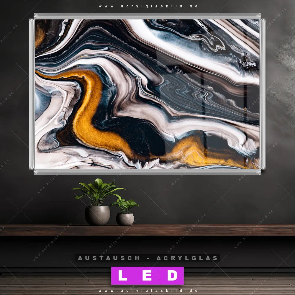 Wechsel-Acrylglas Canvalight® DIA | Fluid Art Goldrausch | Querformat