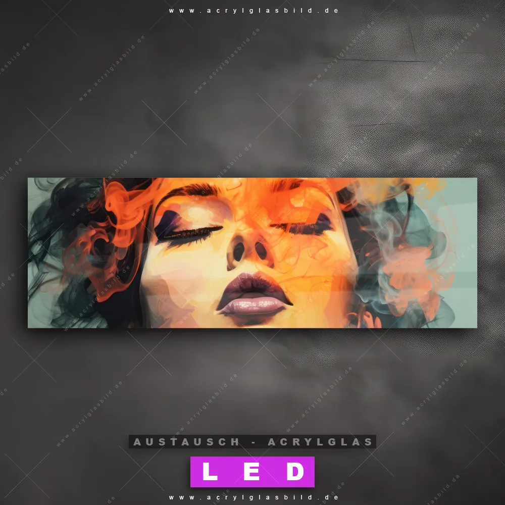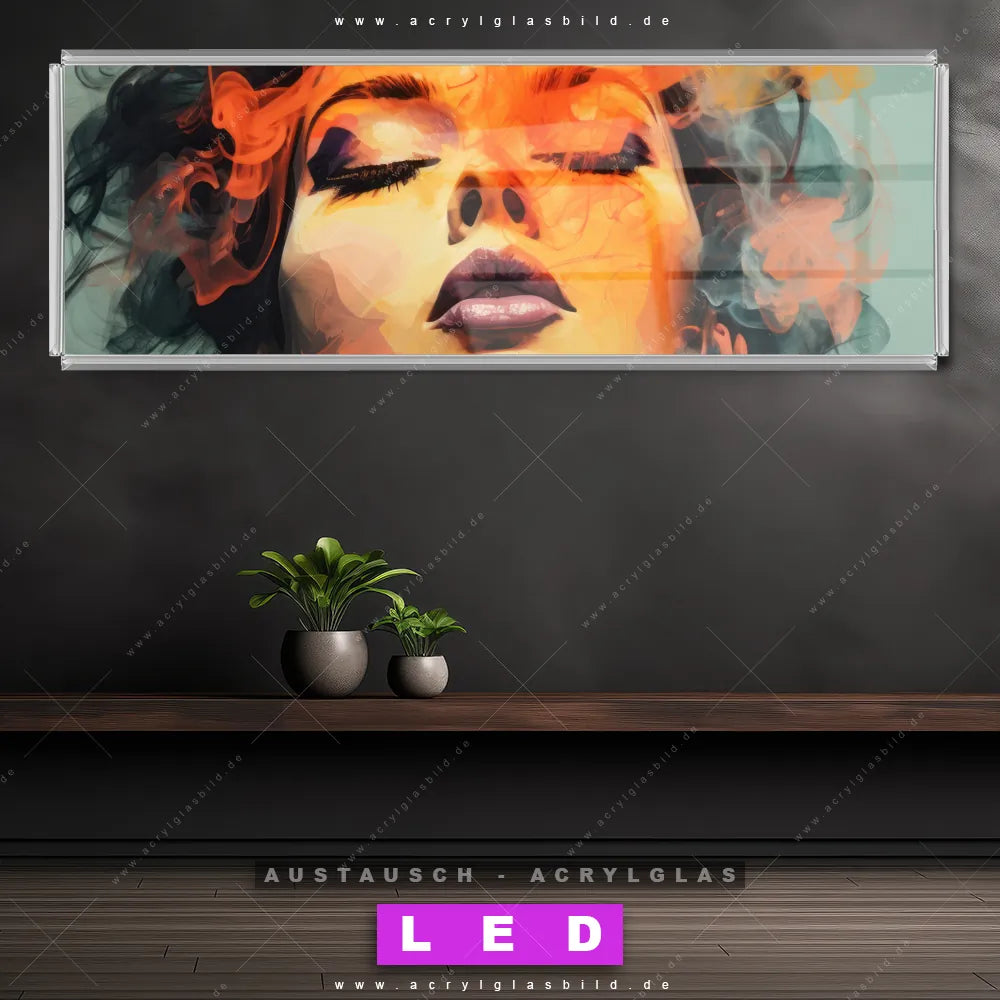 Wechsel-Acrylglas Canvalight® DIA | Frau mit buntem Rauch | Panorama
