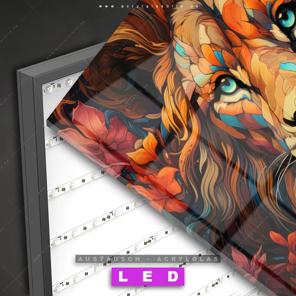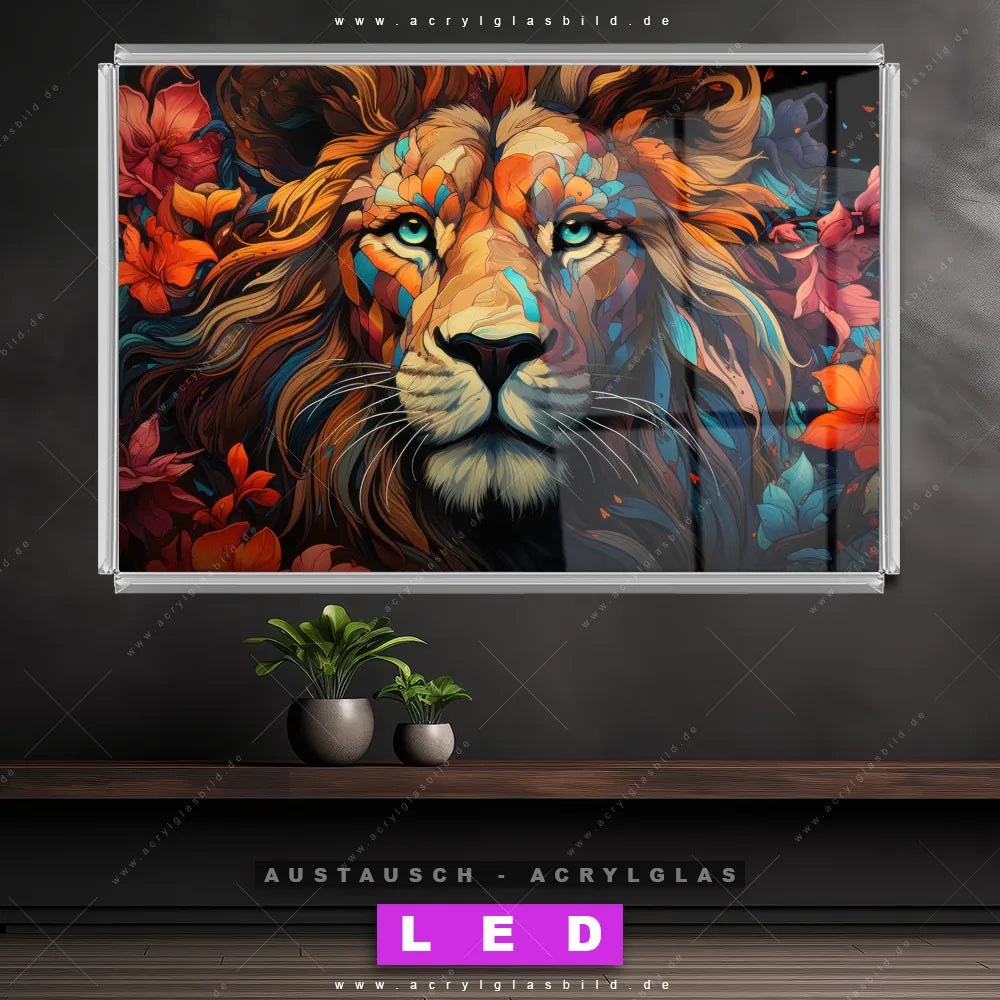 Begriffe wie Tier, Leopard, Raubkatze, Afrika haben dich auf der Suche nach deinem neuen Austausch-Acrylglasbild inspiriert? Dann sollte das Wechsel-Acrylglasbild Löwenporträt im Pop-Art-Stil für dein bereits vorhandenes LED Acrylglasbild Canvalight® DIA den Weg zu dir finden.