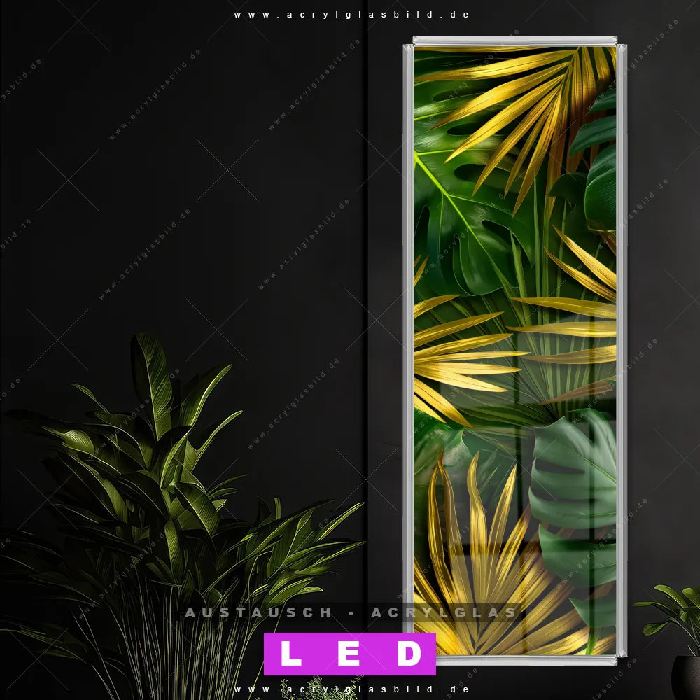 Wechsel-Acrylglas Canvalight® DIA | Blätter Gold Grün | Schmal
