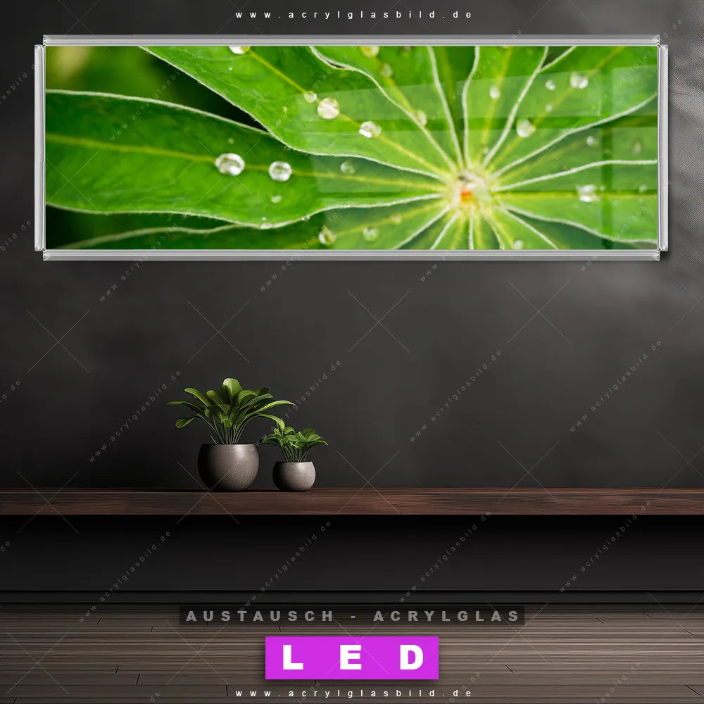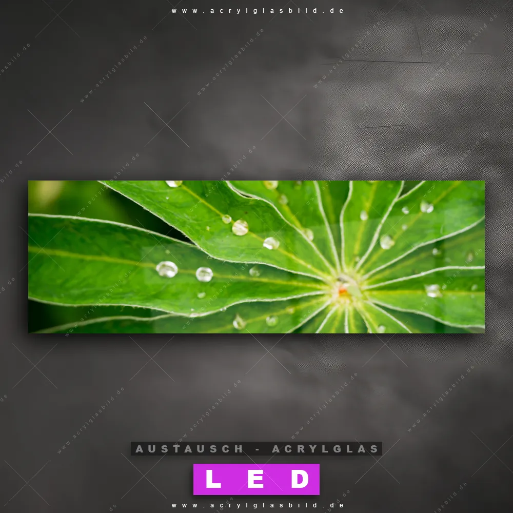 Wechsel-Acrylglas Canvalight® DIA | Blatt mit Wassertropfen | Panorama