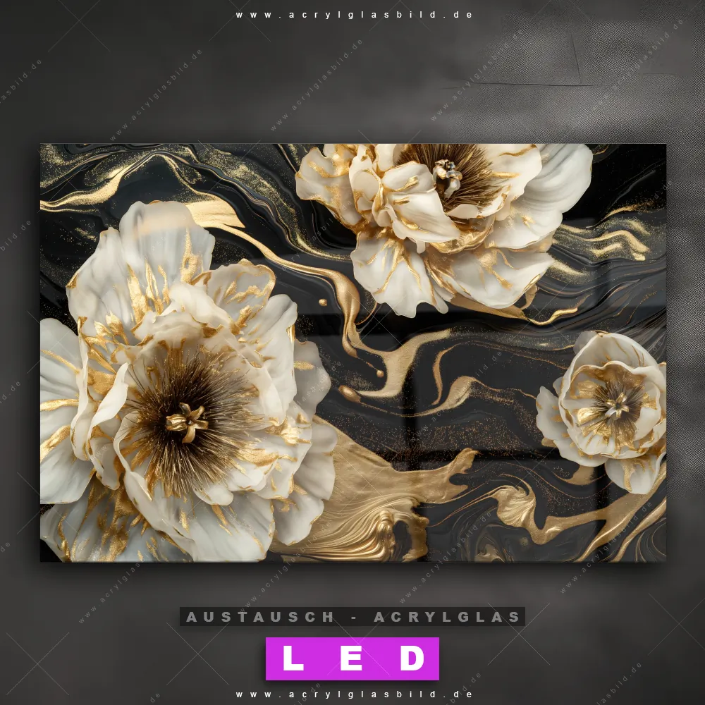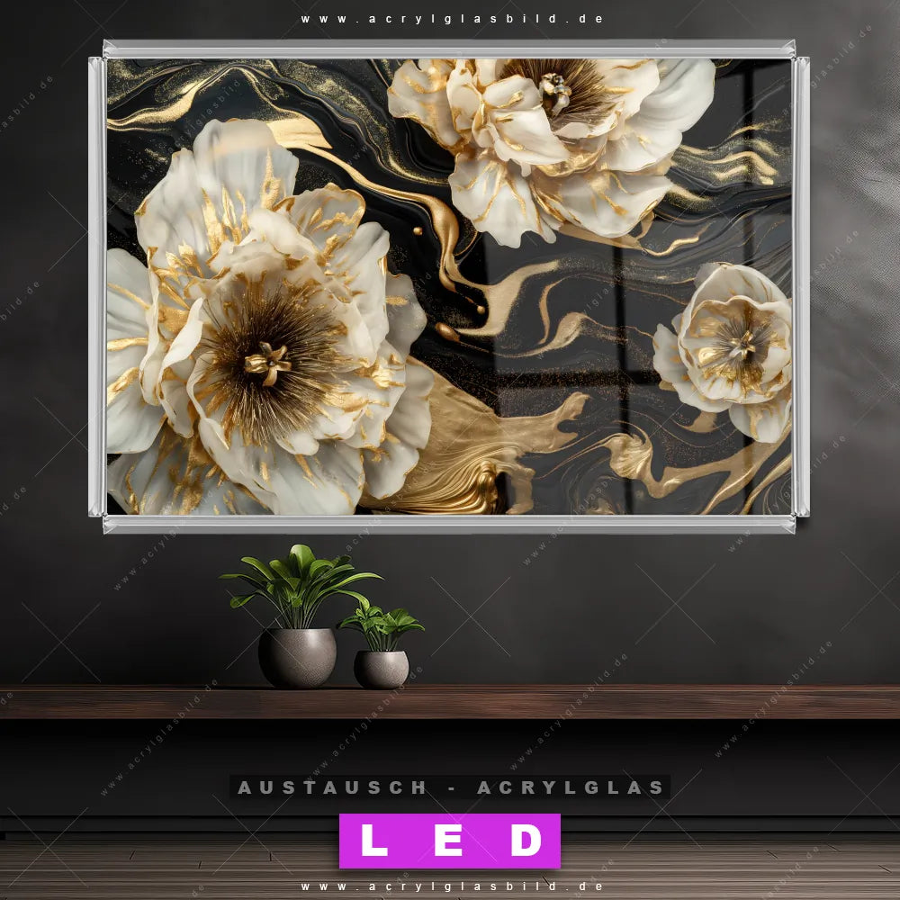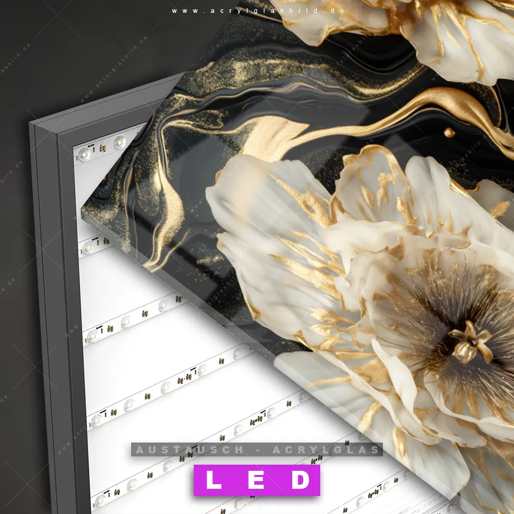 Wechsel-Acrylglas Canvalight® DIA | Blüten Gold Weiß Schwarz | Querformat