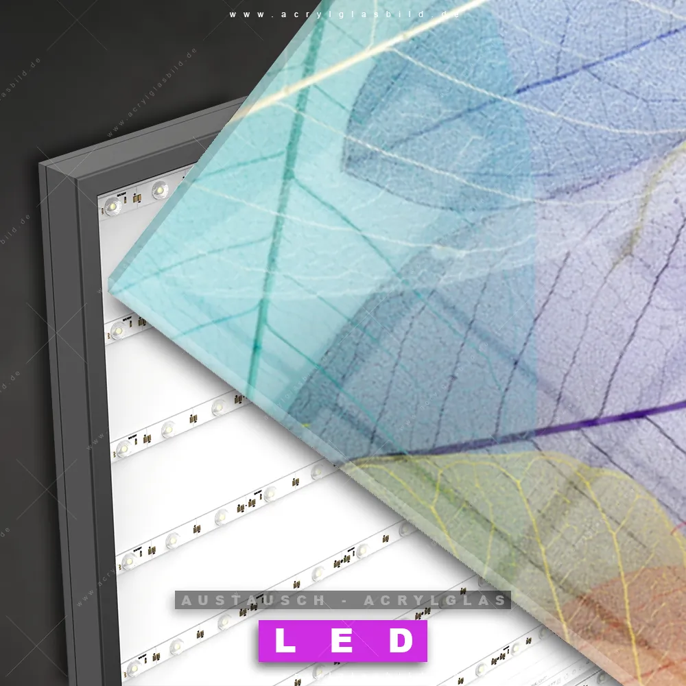 Begriffe wie Blätter, Pflanze, Natur, Nahaufnahme, Vogelperspektive, Draufsicht, Blatt haben dich auf der Suche nach deinem neuen Austausch-Acrylglasbild inspiriert? Dann sollte das Wechsel-Acrylglasbild farbenfrohe Blätter für dein bereits vorhandenes LED Acrylglasbild Canvalight® DIA den Weg zu dir finden.