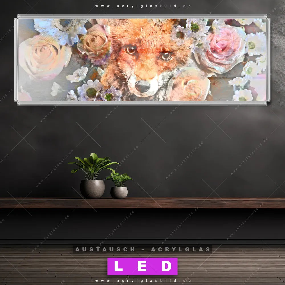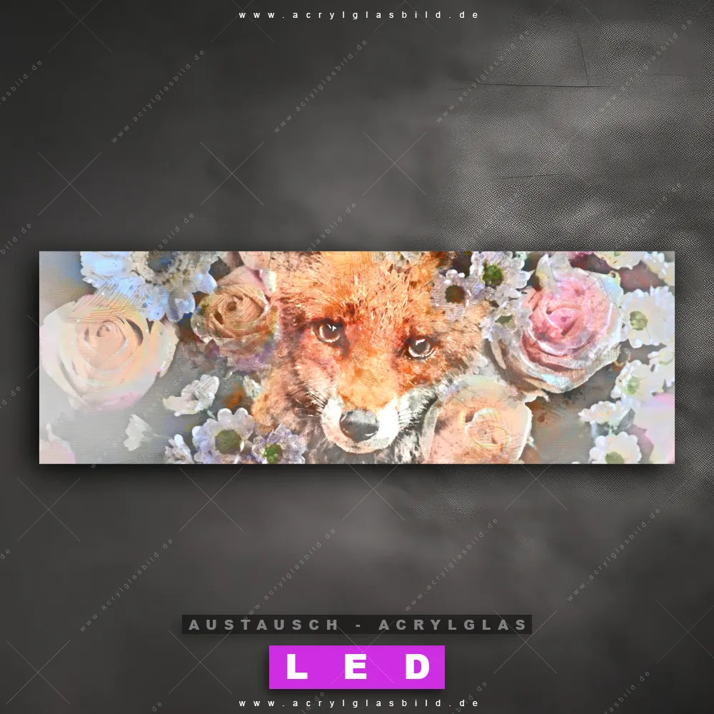 Begriffe wie Tiere & Blumen, Tier, Blumen, Kunst, Aquarell, Fuchs, Waldtier, Blüten haben dich auf der Suche nach deinem neuen Austausch-Acrylglasbild inspiriert? Dann sollte das Wechsel-Acrylglasbild Fuchs umgeben von einem Blumenmeer für dein bereits vorhandenes LED Acrylglasbild Canvalight® DIA den Weg zu dir finden.