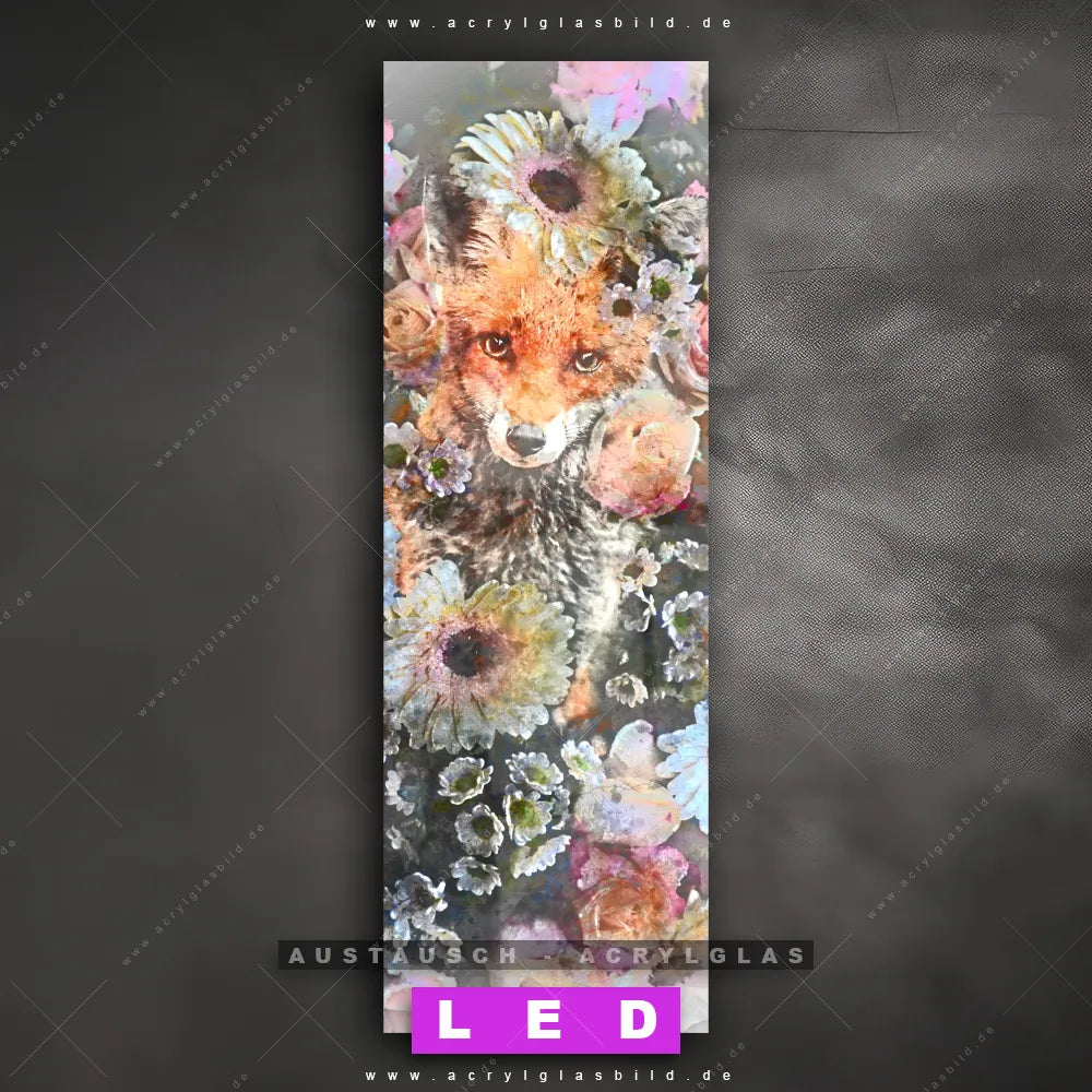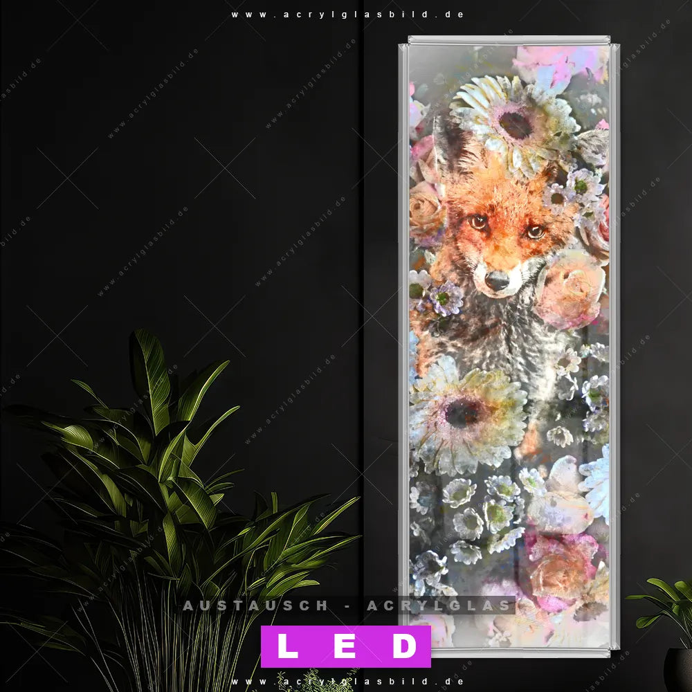 Begriffe wie Tiere & Blumen, Tier, Blumen, Kunst, Aquarell, Fuchs, Waldtier, Blüten haben dich auf der Suche nach deinem neuen Austausch-Acrylglasbild inspiriert? Dann sollte das Wechsel-Acrylglasbild Fuchs umgeben von einem Blumenmeer für dein bereits vorhandenes LED Acrylglasbild Canvalight® DIA den Weg zu dir finden.