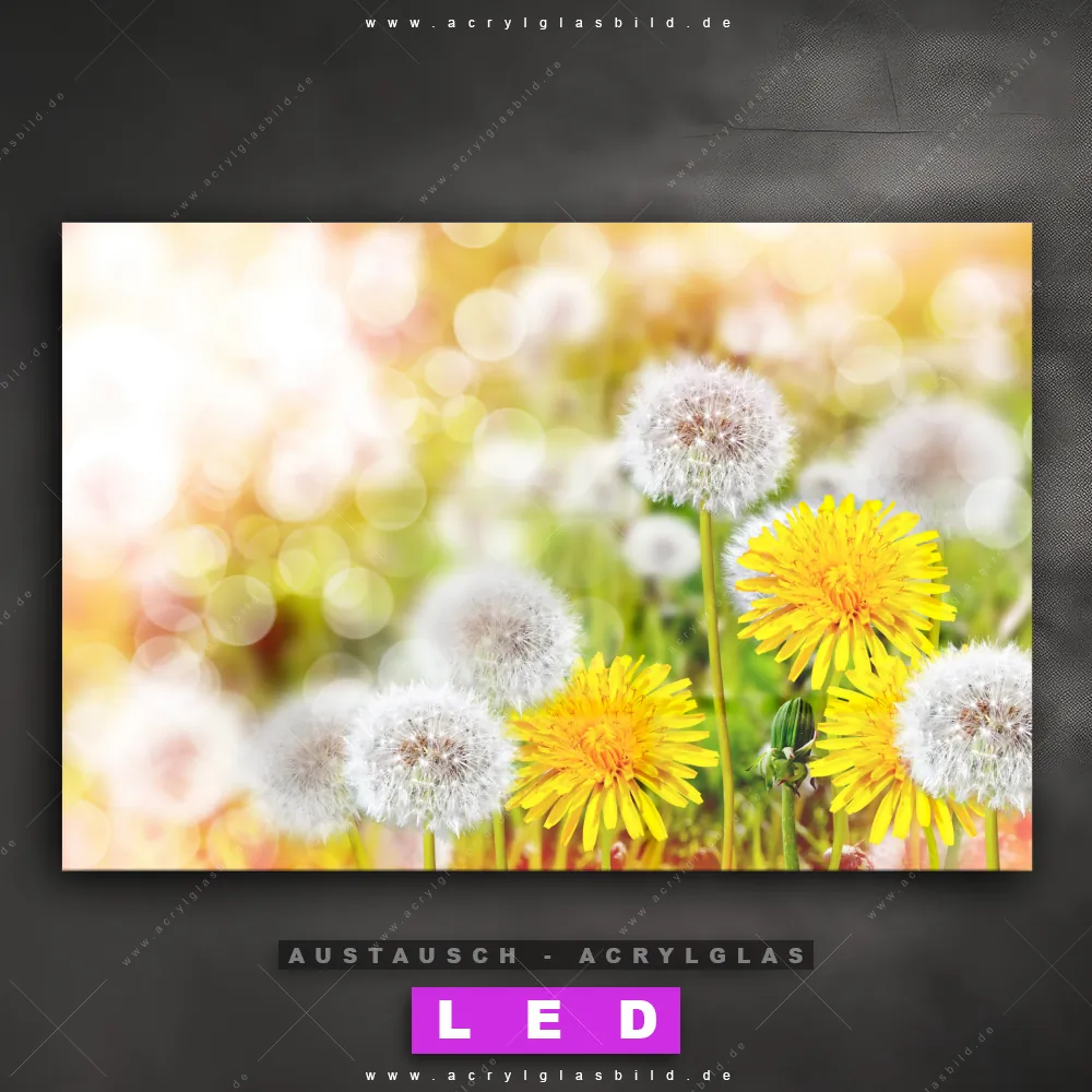 Begriffe wie Blume, Pflanze, Natur, Nahaufnahme, Pusteblume, Dandelion, Löwenzahn, Wiese haben dich auf der Suche nach deinem neuen Austausch-Acrylglasbild inspiriert? Dann sollte das Wechsel-Acrylglasbild Pusteblumen in sonnigem Gelb für dein bereits vorhandenes LED Acrylglasbild Canvalight® DIA den Weg zu dir finden.