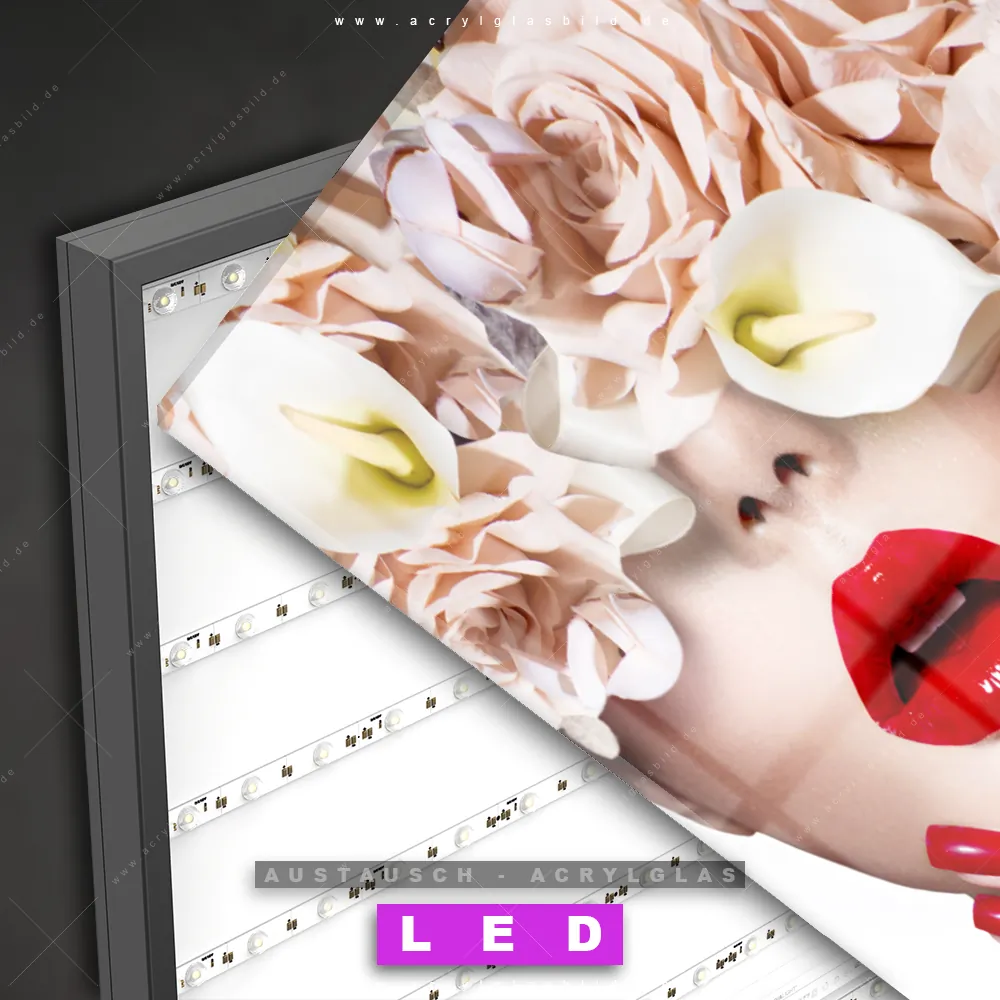 Wechsel-Acrylglas Canvalight® DIA | Gesicht & Rosen | Querformat