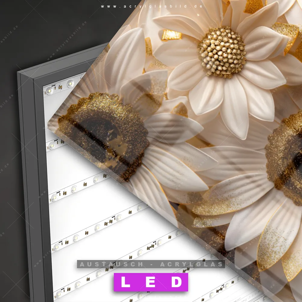 Wechsel-Acrylglas Canvalight® DIA | Goldene Blütenpracht | Hochformat